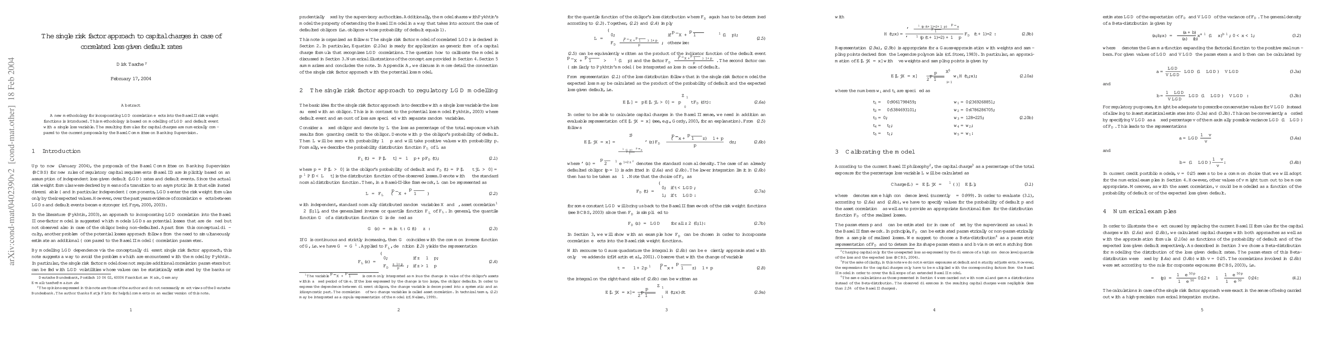 The approach numerically compares capital charges to current proposals by the Basel Committee on Banking Supervision and aims to improve regulatory capital charge calculations.