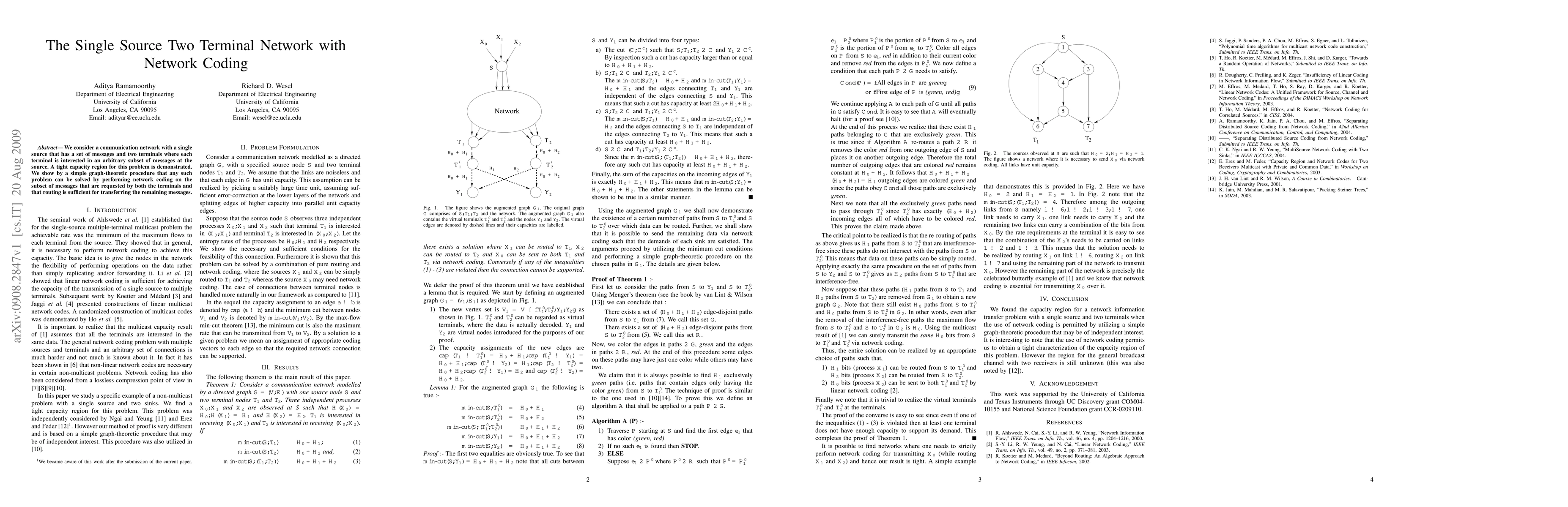We consider a communication network with a single source that has a set of messages and two terminals where each terminal is interested in an arbitrary subset of messages at the source. A tight capacity region for this problem is demonstrated. We show by a simple graph-theoretic procedure that any such problem can be solved by performing network coding on the subset of messages that are requested by both the terminals and that routing is sufficient for transferring the remaining messages.
