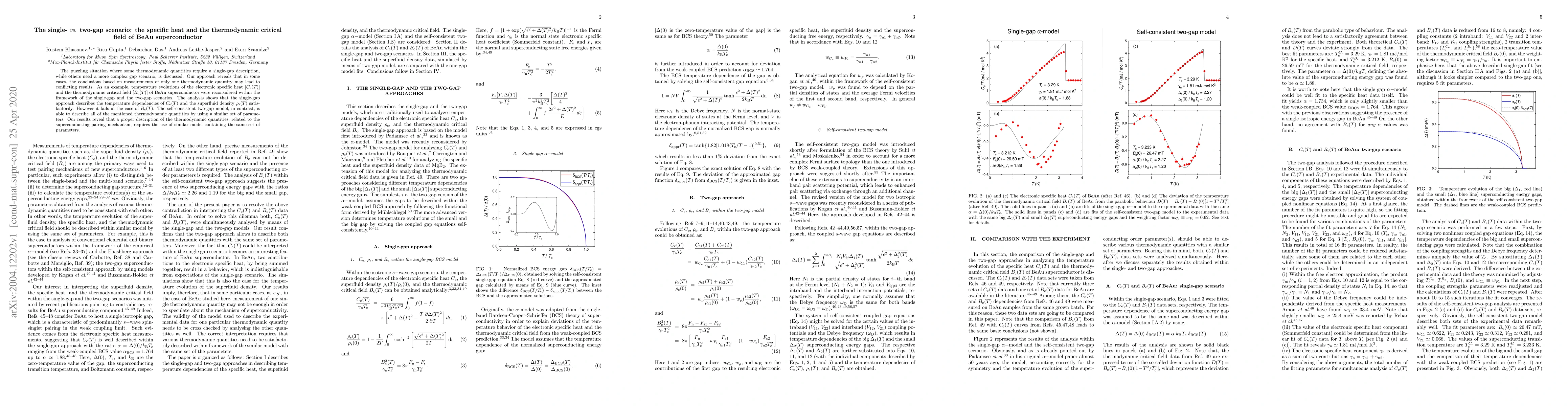 The puzzling situation where some thermodynamic quantities require a single-gap description, while others need a more complex gap scenario, is discussed. Our approach reveals that in some cases, the conclusions based on measurements of only one thermodynamic quantity may lead to conflicting results. As an example, temperature evolutions of the electronic specific heat [$C_{\rm e}(T)$] and the thermodynamic critical field [$B_{\rm c}(T)$] of BeAu superconductor were reconsidered within the framework of the single-gap and the two-gap scenarios. The analysis shows that the single-gap approach describes the temperature dependencies of $C_{\rm e}(T)$ and the superfluid density $\rho_{\rm s}(T)$ satisfactorily. However it fails in the case of $B_{\rm c}(T)$. The self-consistent two-gap model, in contrast, is able to describe all of the mentioned thermodynamic quantities by using a similar set of parameters. Our results reveal that a proper description of the thermodynamic quantities, related to the superconducting pairing mechanism, requires the use of similar model containing the same set of parameters.