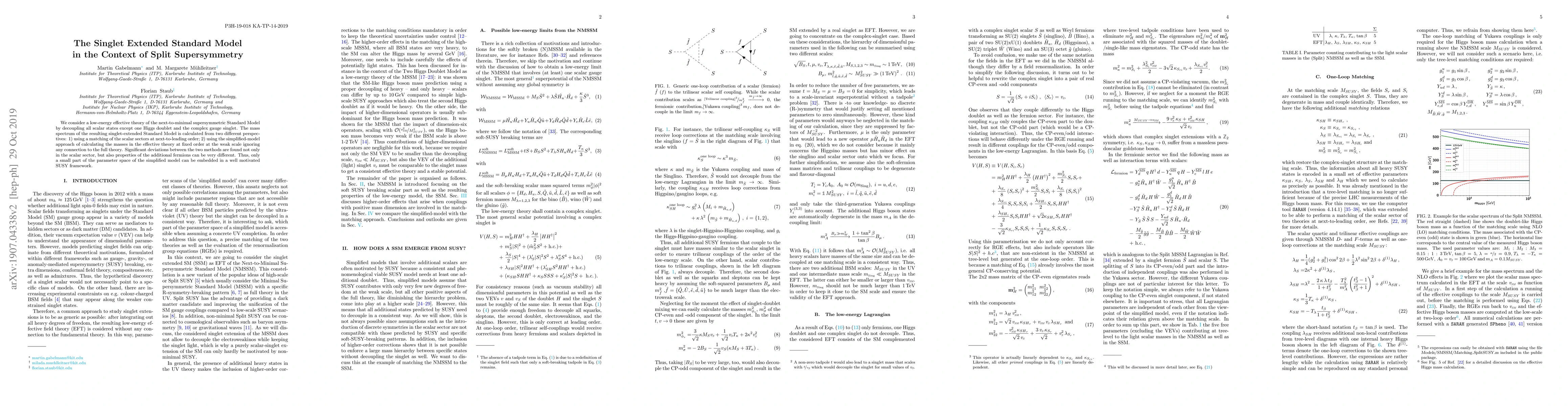 We consider a low-energy effective theory of the next-to-minimal supersymmetric Standard Model by decoupling all scalar states except one Higgs doublet and the complex gauge singlet. The mass spectrum of the resulting singlet-extended Standard Model is calculated from two different perspectives: 1) using a matching of the scalar sectors at next-to-leading order; 2) using the simplified-model approach of calculating the masses in the effective theory at fixed order at the weak scale ignoring any connection to the full theory. Significant deviations between the two methods are found not only in the scalar sector, but also properties of the additional fermions can be very different. Thus, only a small part of the parameter space of the simplified model can be embedded in a well motivated SUSY framework.