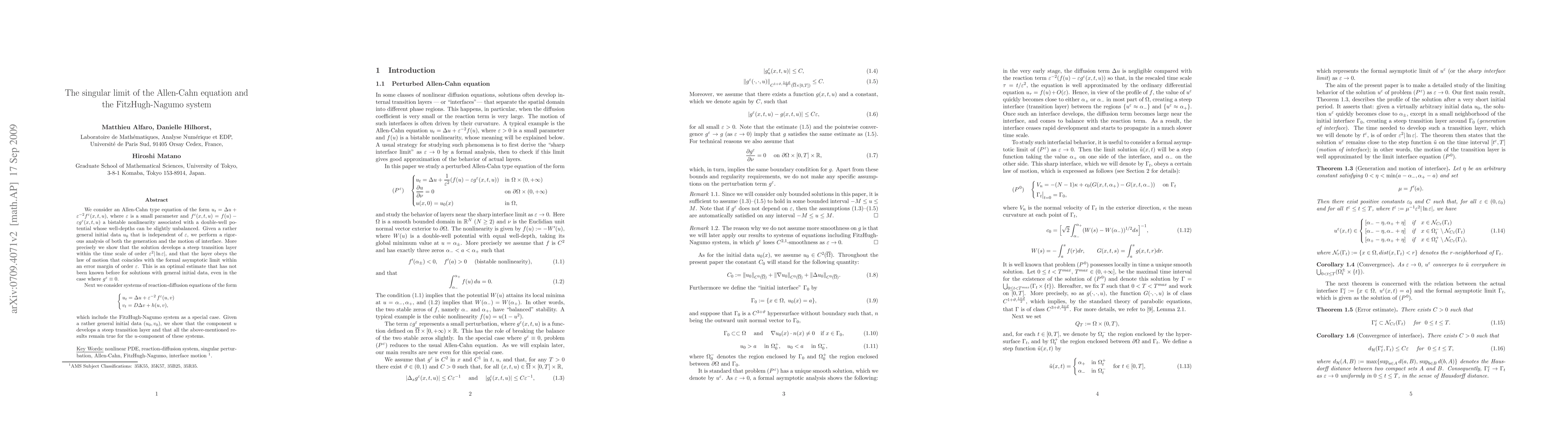 This paper rigorously analyzes the singular limit of an Allen-Cahn equation with a small nonlinear reaction term, showing the development of a steep transition layer and providing an optimal estimate for its width. It extends these findings to a class of reaction-diffusion systems, including the FitzHugh-Nagumo system, demonstrating similar behavior in the first component.