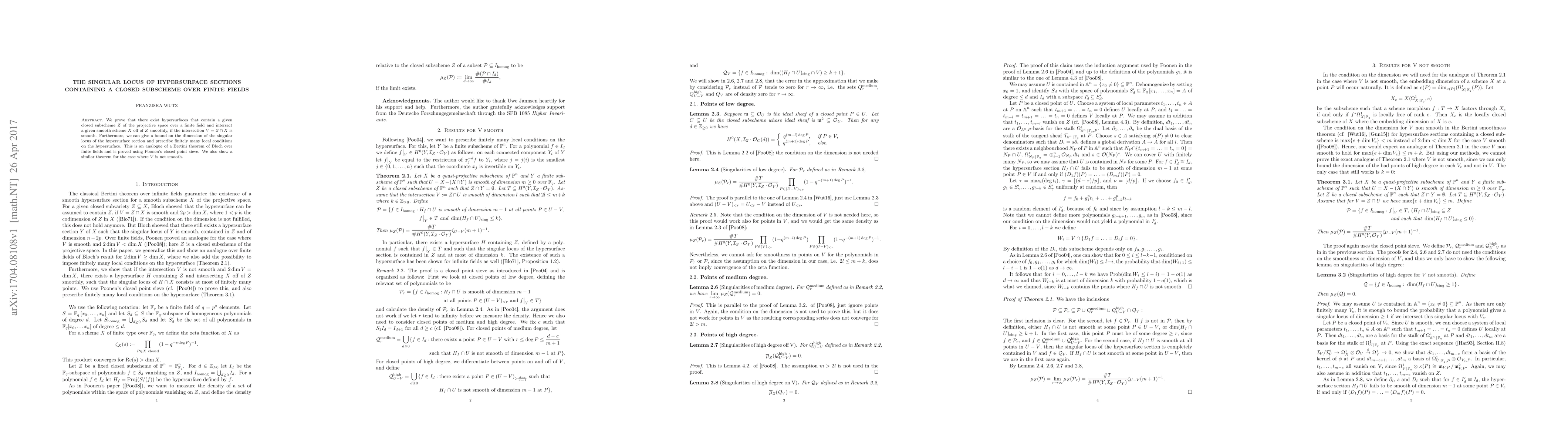 This paper proves the existence of hypersurfaces containing a given closed subscheme $Z$ and intersecting a smooth scheme $X$ smoothly away from $Z$ over finite fields, with bounds on the dimension of the singular locus. It extends a Bertini theorem to finite fields using Poonen's closed point sieve, and also addresses cases where $Z \cap X$ is not smooth.