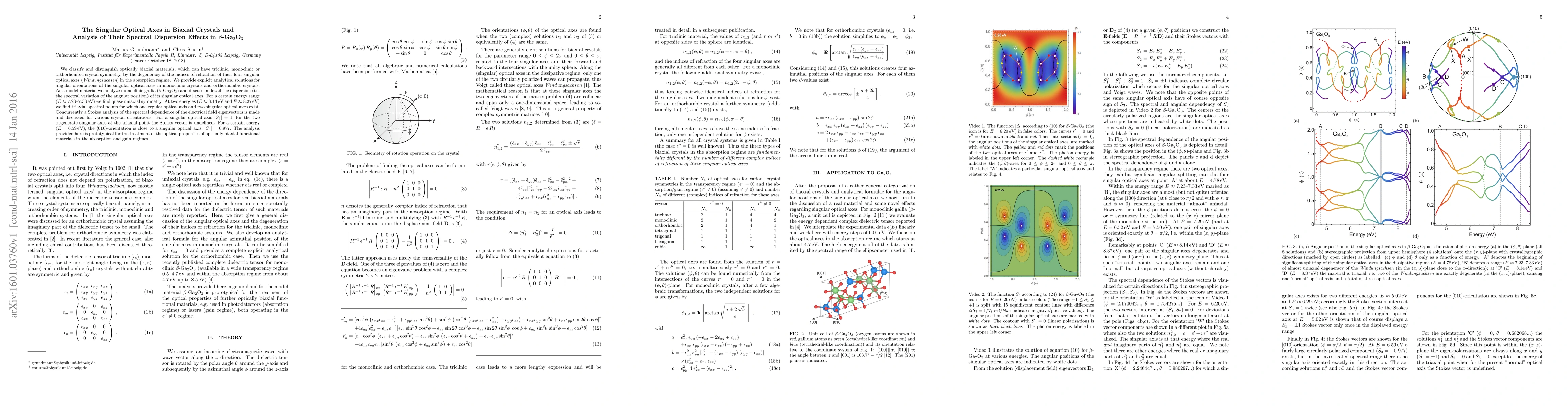 This paper classifies optically biaxial materials by analyzing the degeneracy of their singular optical axes, providing analytical solutions for monoclinic and orthorhombic crystals. It focuses on $\beta$-Ga$_2$O$_3$ and discusses its spectral dispersion effects, revealing quasi-uniaxial symmetry in a specific energy range and triaxial spectral points at others, while also detailing the spectral dependence of the electrical field eigenvectors.