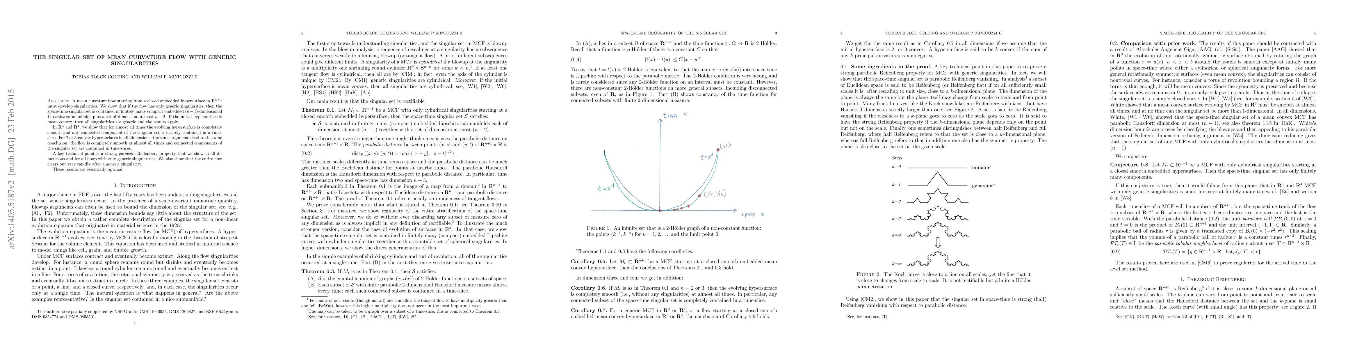 Summary: This paper investigates mean curvature flow starting from closed embedded hypersurfaces, proving that generic singularities result in a singular set contained within finitely many compact submanifolds plus a low-dimensional set. It concludes that almost all times feature smooth evolution and singular components contained in time-slices, supported by a parabolic Reifenberg property.