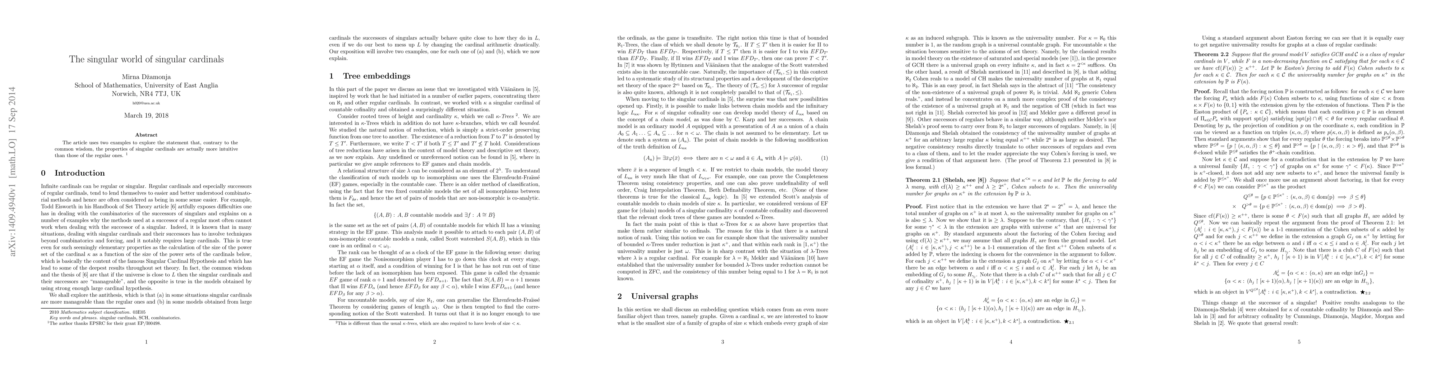 The article uses two examples to explore the statement that, contrary to the common wisdom, the properties of singular cardinals are actually more intuitive than those of the regular ones.