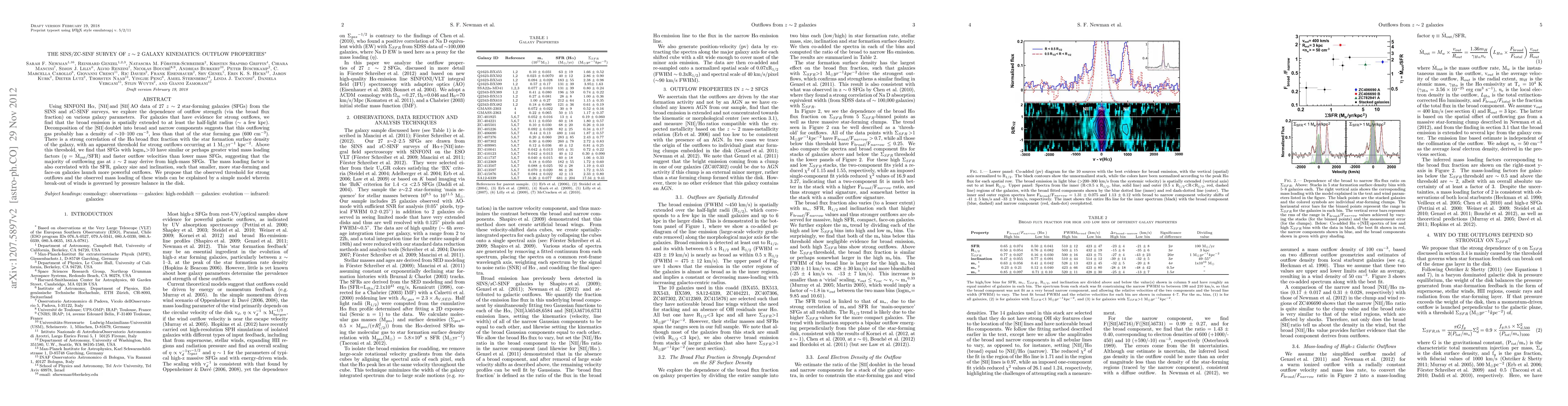 Based on SINFONI Ha, [NII] and [SII] AO data of 30 z \sim 2 star-forming galaxies (SFGs) from the SINS and zcSINF surveys, we find a strong correlation of the Ha broad flux fraction with the star formation surface density of the galaxy, with an apparent threshold for strong outflows occurring at 1 Msun yr^-1 kpc^-2. Above this threshold, we find that SFGs with logm_\ast>10 have similar or perhaps greater wind mass loading factors (eta = Mdotout/SFR) and faster outflow velocities than lower mass SFGs. This trend suggests that the majority of outflowing gas at z \sim 2 may derive from high-mass SFGs, and that the z \sim 2 mass-metallicity relation is driven more by dilution of enriched gas in the galaxy gas reservoir than by the efficiency of outflows. The mass loading factor is also correlated with the SFR and inclination, such that more star-forming and face-on galaxies launch more powerful outflows. For galaxies that have evidence for strong outflows, we find that the broad emission is spatially extended to at least the half-light radius (\sim a few kpc). We propose that the observed threshold for strong outflows and the observed mass loading of these winds can be explained by a simple model wherein break-out of winds is governed by pressure balance in the disk. Using the ratio of the [SII] doublet in a broad and narrow component, we find that outflowing gas has a density of \sim10-100 cm^-3, significantly less than that of the star forming gas (600 cm^-3).