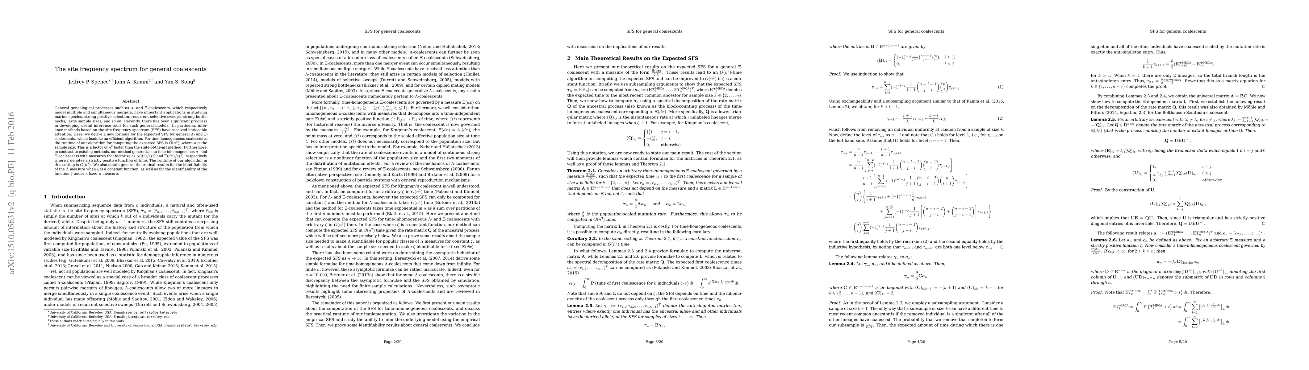 This paper develops a new formula for the expected site frequency spectrum (SFS) for general $\Lambda$- and $\Xi$-coalescents, leading to an efficient algorithm that is $n^2$ times faster than existing methods for time-homogeneous coalescents. The method also extends to time-inhomogeneous coalescents with a runtime of $O(n^3)$.