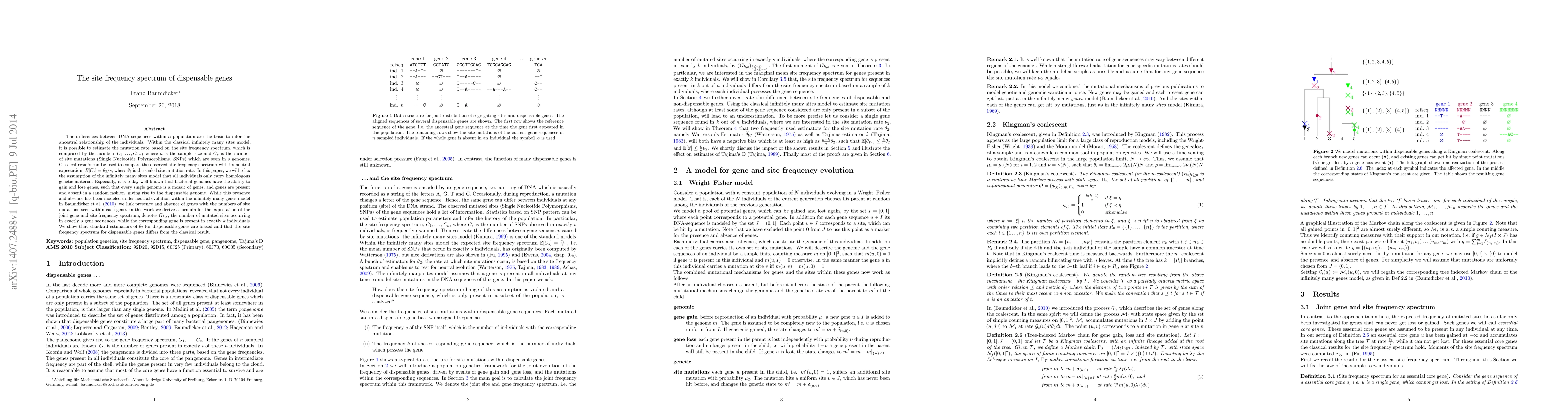 This paper explores the site frequency spectrum of dispensable genes, showing that bacterial genomes often contain genes that are present or absent randomly. It derives a new formula for the joint gene and site frequency spectrum, demonstrating that standard estimators for the scaled site mutation rate are biased and that the site frequency spectrum for dispensable genes deviates from classical neutral expectations.