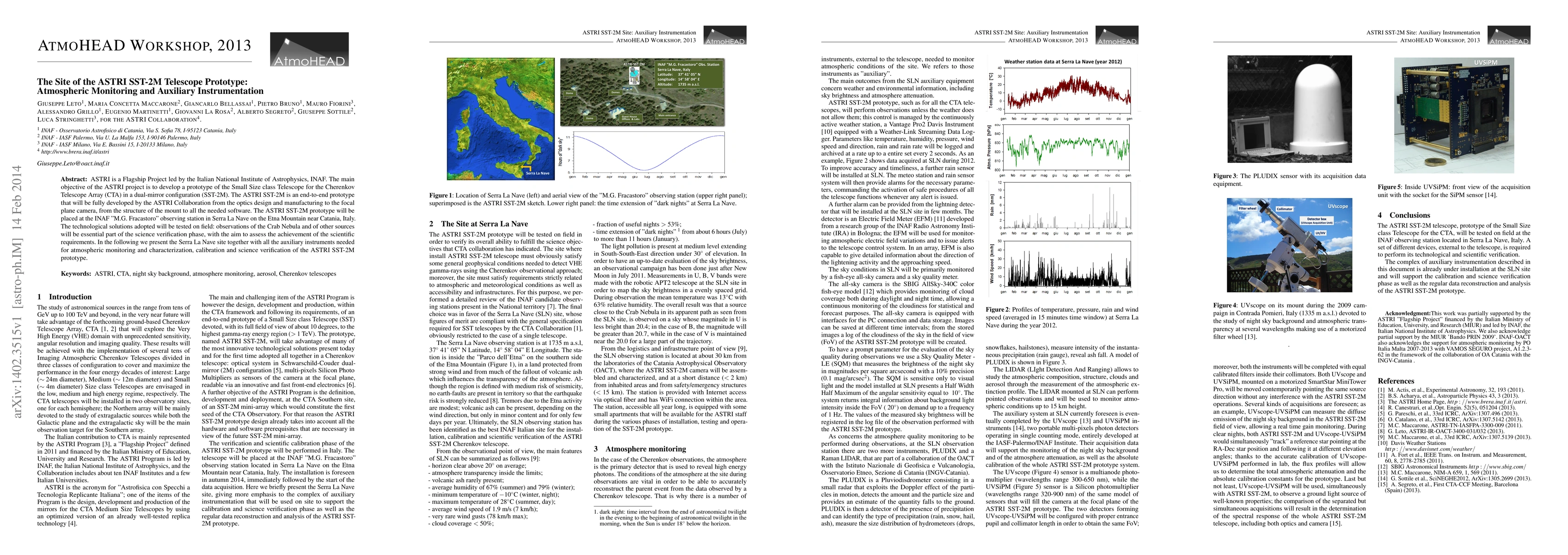 The ASTRI SST-2M telescope prototype, part of the Italian National Institute of Astrophysics' flagship project, will be deployed at the Serra La Nave site on Etna Mountain. Auxiliary instruments for atmospheric monitoring and calibration will support the prototype's science verification phase.