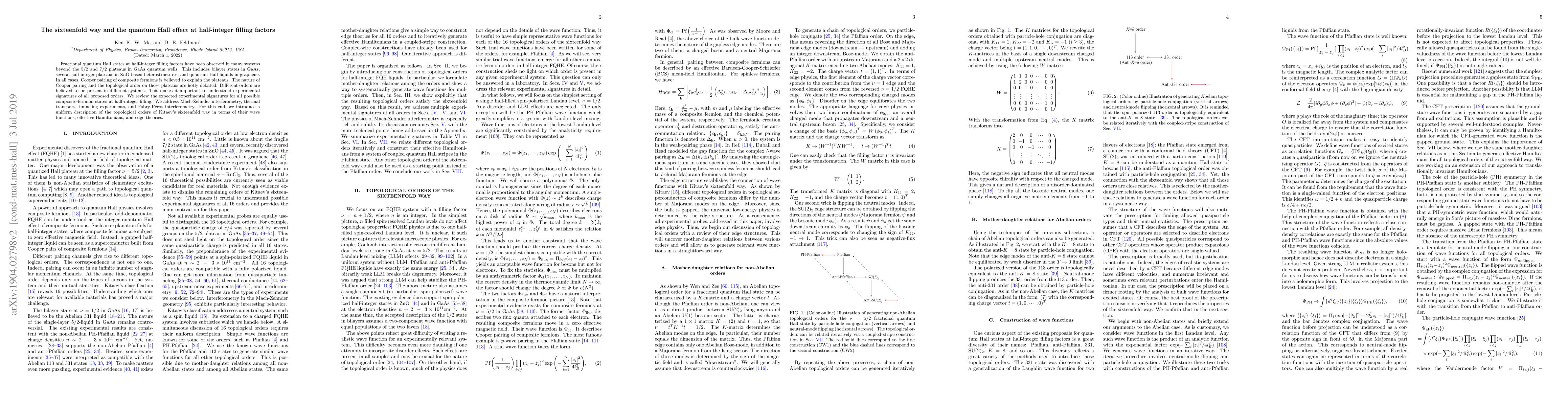 This paper reviews experimental signatures of fractional quantum Hall states at half-integer filling factors, emphasizing the role of Cooper pairing in explaining these phenomena. It introduces a uniform description of Kitaev's sixteenfold way to understand the topological order in various systems, including GaAs, ZnO, and graphene.