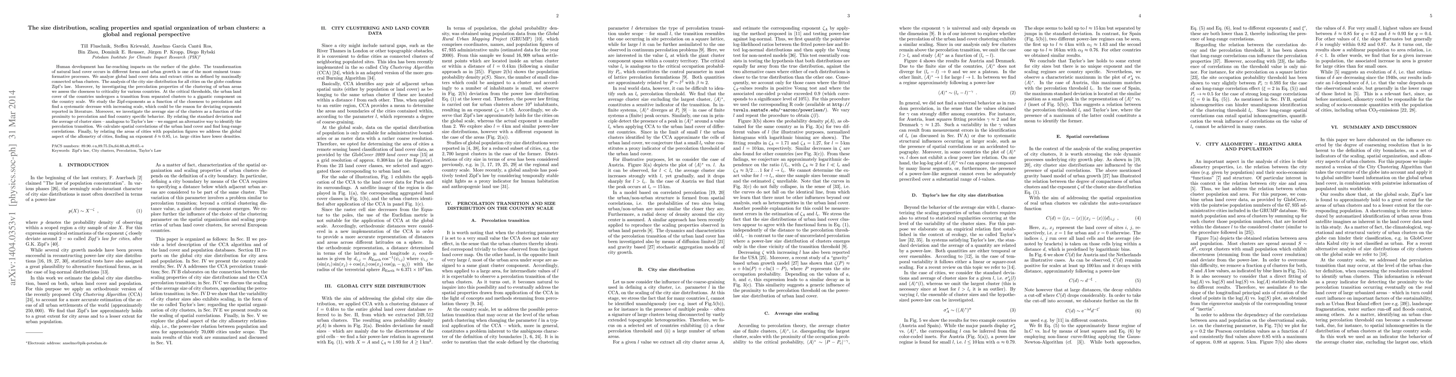 Human development has far-reaching impacts on the surface of the globe. The transformation of natural land cover occurs in different forms and urban growth is one of the most eminent transformative processes. We analyze global land cover data and extract cities as defined by maximally connected urban clusters. The analysis of the city size distribution for all cities on the globe confirms Zipf's law. Moreover, by investigating the percolation properties of the clustering of urban areas we assess the closeness to criticality for various countries. At the critical thresholds, the urban land cover of the countries undergoes a transition from separated clusters to a gigantic component on the country scale. We study the Zipf-exponents as a function of the closeness to percolation and find a systematic decrease with increasing scale, which could be the reason for deviating exponents reported in literature. Moreover, we investigate the average size of the clusters as a function of the proximity to percolation and find country specific behavior. By relating the standard deviation and the average of cluster sizes -- analogous to Taylor's law -- we suggest an alternative way to identify the percolation transition. We calculate spatial correlations of the urban land cover and find long-range correlations. Finally, by relating the areas of cities with population figures we address the global aspect of the allometry of cities, finding an exponent $\delta\approx 0.85$, i.e. large cities have lower densities.