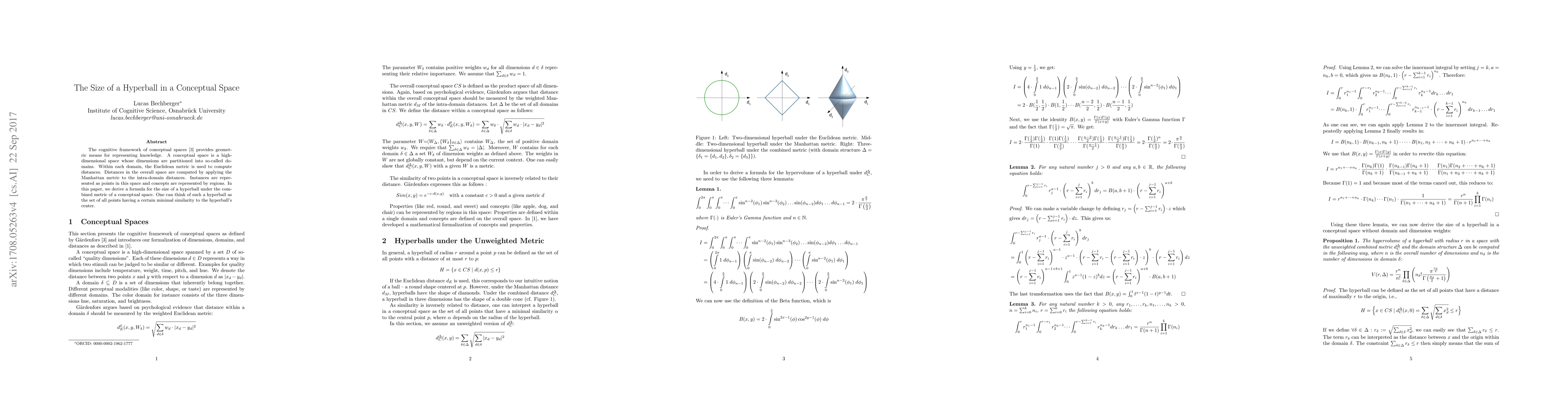 The cognitive framework of conceptual spaces [3] provides geometric means for representing knowledge. A conceptual space is a high-dimensional space whose dimensions are partitioned into so-called domains. Within each domain, the Euclidean metric is used to compute distances. Distances in the overall space are computed by applying the Manhattan metric to the intra-domain distances. Instances are represented as points in this space and concepts are represented by regions. In this paper, we derive a formula for the size of a hyperball under the combined metric of a conceptual space. One can think of such a hyperball as the set of all points having a certain minimal similarity to the hyperball's center.