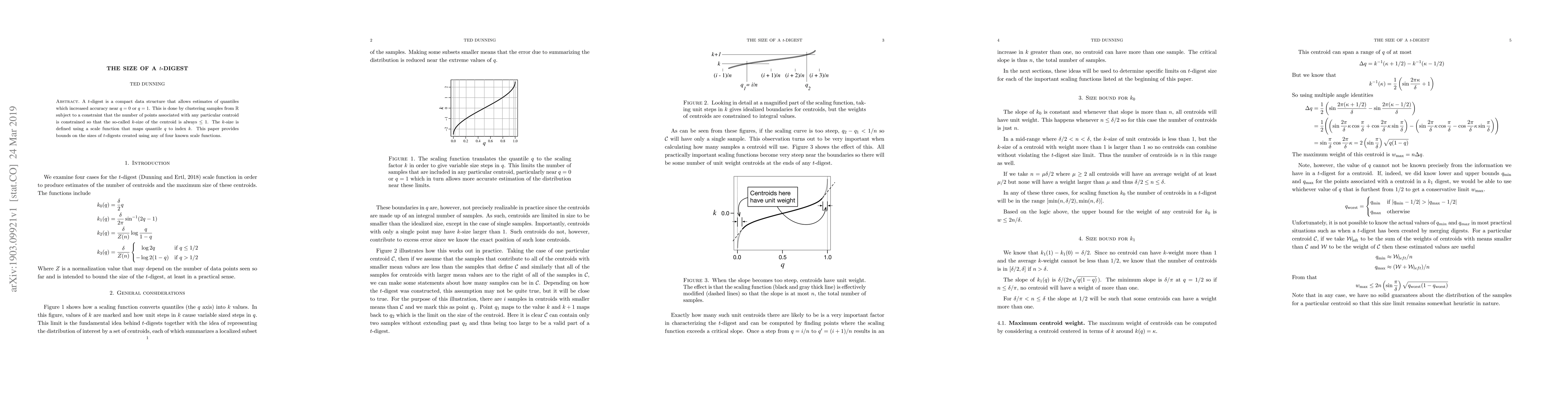 A $t$-digest is a compact data structure that allows estimates of quantiles which increased accuracy near $q = 0$ or $q=1$. This is done by clustering samples from $\mathbb R$ subject to a constraint that the number of points associated with any particular centroid is constrained so that the so-called $k$-size of the centroid is always $\le 1$. The $k$-size is defined using a scale function that maps quantile $q$ to index $k$. This paper provides bounds on the sizes of $t$-digests created using any of four known scale functions.