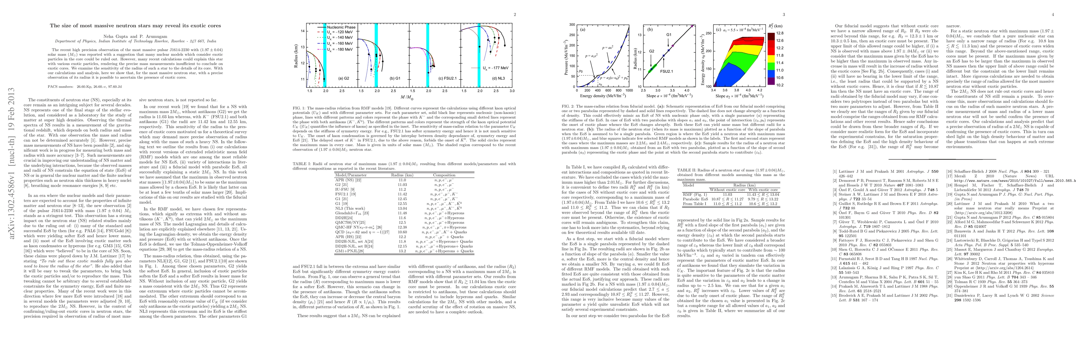This paper discusses how precise mass and radius measurements of the most massive neutron star, J1614-2230, can reveal the presence of exotic particles in its core. While mass alone is insufficient to conclude on exotic cores, a precise radius measurement could provide the necessary information to ascertain such cores.