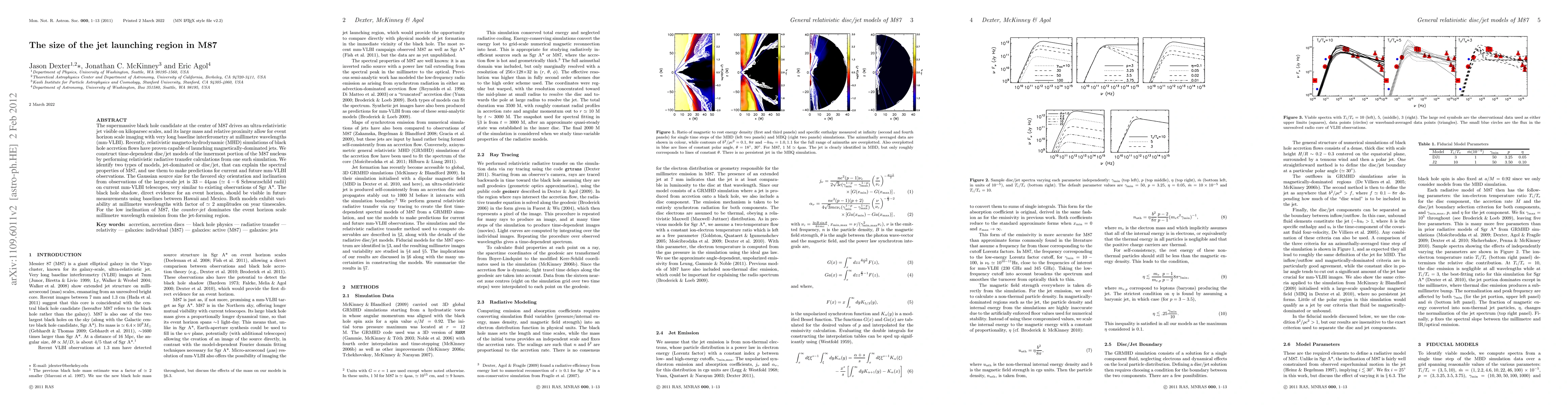 The supermassive black hole candidate at the center of M87 drives an ultra-relativistic jet visible on kiloparsec scales, and its large mass and relative proximity allow for event horizon scale imaging with very long baseline interferometry at millimeter wavelengths (mm-VLBI). Recently, relativistic magneto-hydrodynamic (MHD) simulations of black hole accretion flows have proven capable of launching magnetically-dominated jets. We construct time-dependent disc/jet models of the innermost portion of the M87 nucleus by performing relativistic radiative transfer calculations from one such simulation. We identify two types of models, jet-dominated or disc/jet, that can explain the spectral properties of M87, and use them to make predictions for current and future mm-VLBI observations. The Gaussian source size for the favored sky orientation and inclination from observations of the large-scale jet is 33-44 microarcseconds (~4-6 Schwarzschild radii) on current mm-VLBI telescopes, very similar to existing observations of Sgr A*. The black hole shadow, direct evidence of an event horizon, should be visible in future measurements using baselines between Hawaii and Mexico. Both models exhibit variability at millimeter wavelengths with factor of ~2 amplitudes on year timescales. For the low inclination of M87, the counter-jet dominates the event horizon scale millimeter wavelength emission from the jet-forming region.