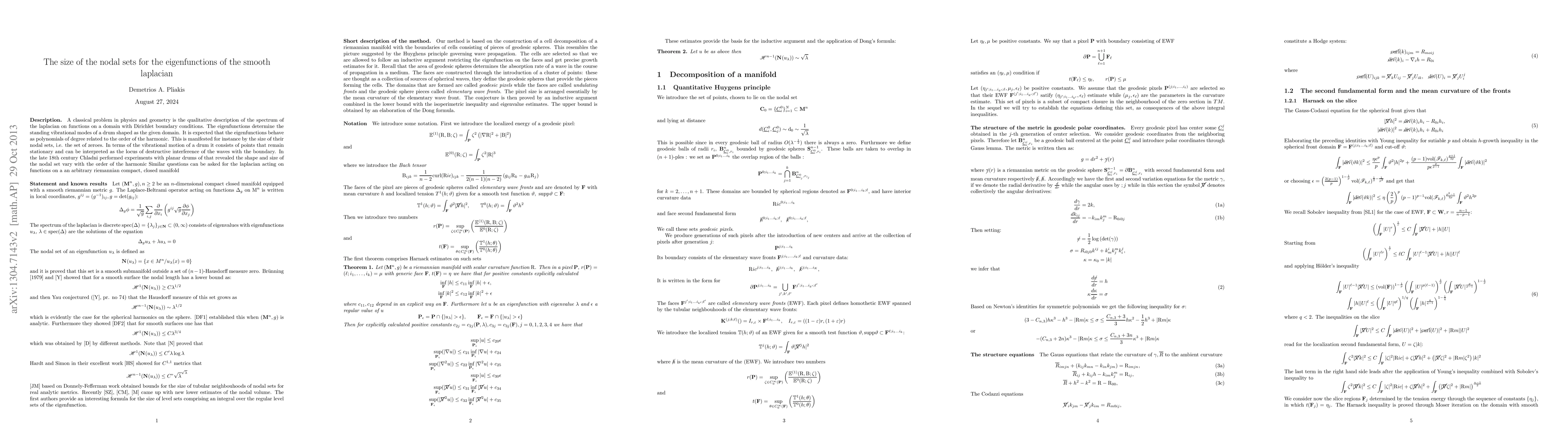 Summary: This paper establishes estimates for eigenfunctions on smooth manifolds and utilizes these estimates to determine the size of their nodal sets, providing insights into the geometric properties of the eigenfunctions.