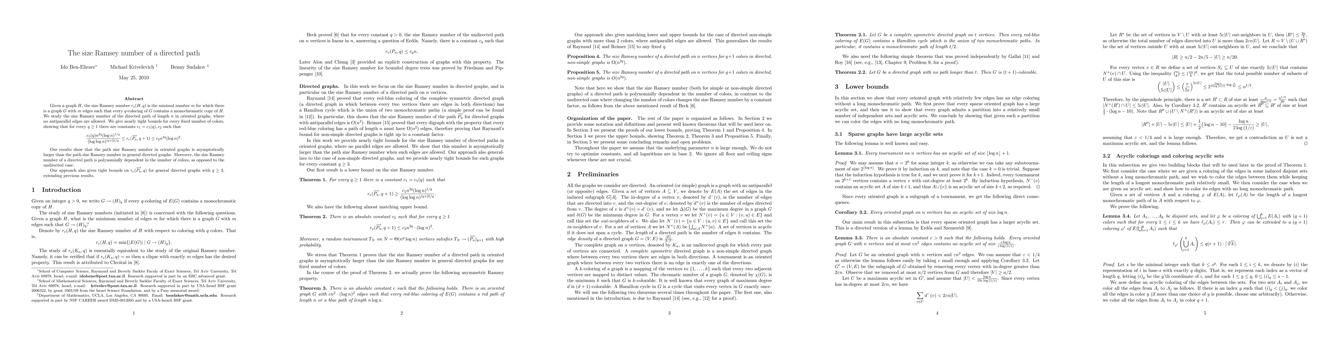 This paper investigates the size Ramsey number $r_e(\overrightarrow{P_n},q+1)$ for a directed path of length $n$, providing nearly tight bounds for any fixed number of colors $q$. The results show that the size Ramsey number for oriented graphs is asymptotically larger than in general directed graphs and polynomially dependent on the number of colors, unlike the undirected case.
