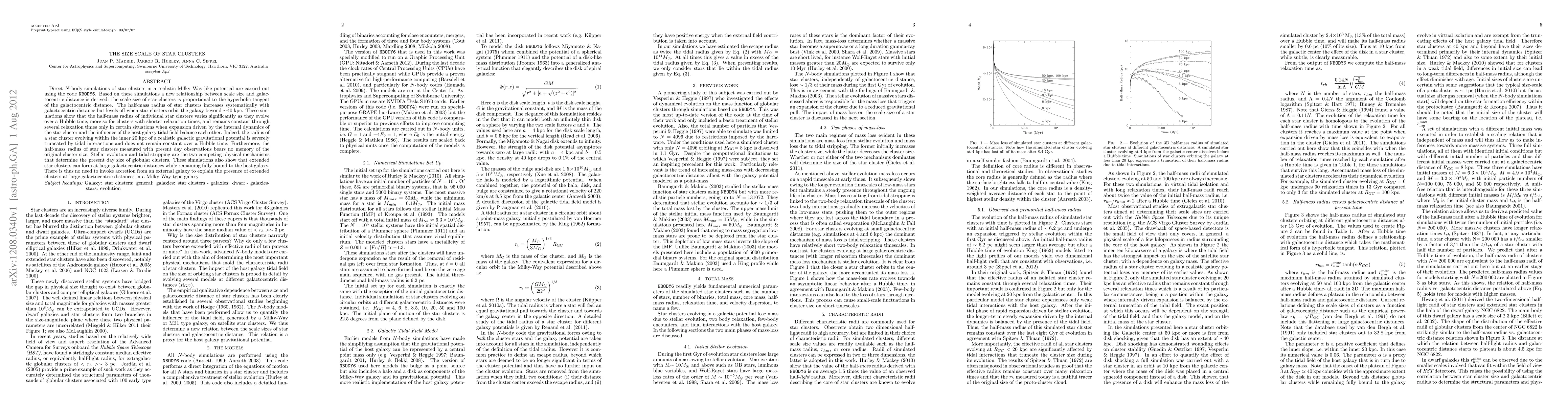 This paper uses N-body simulations to derive a new relationship between the scale size of star clusters and their galactocentric distance, showing that the half-mass radius increases with distance but levels off beyond 40 kpc. Stellar evolution and tidal stripping determine the present-day size of clusters, and extended clusters can form at large distances without external accretion.