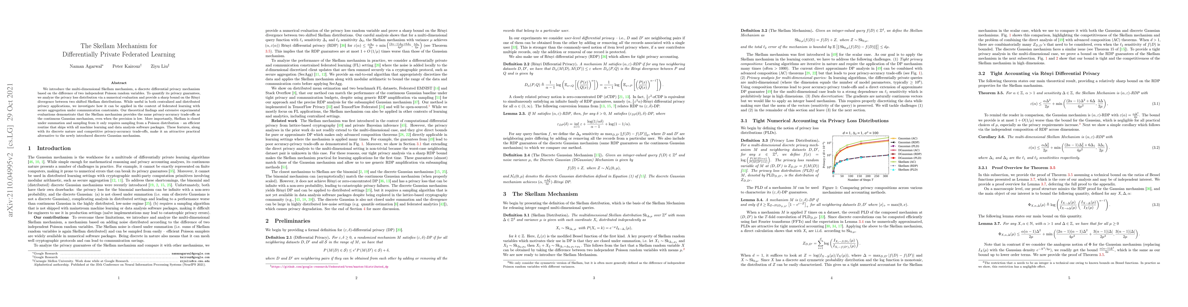 This paper introduces the Skellam mechanism, a discrete differential privacy method based on the difference of two independent Poisson distributions, for federated learning. It shows that the Skellam mechanism offers competitive privacy-accuracy trade-offs akin to the Gaussian mechanism, with practical advantages due to its closed nature under summation and efficient implementation via Poisson sampling.