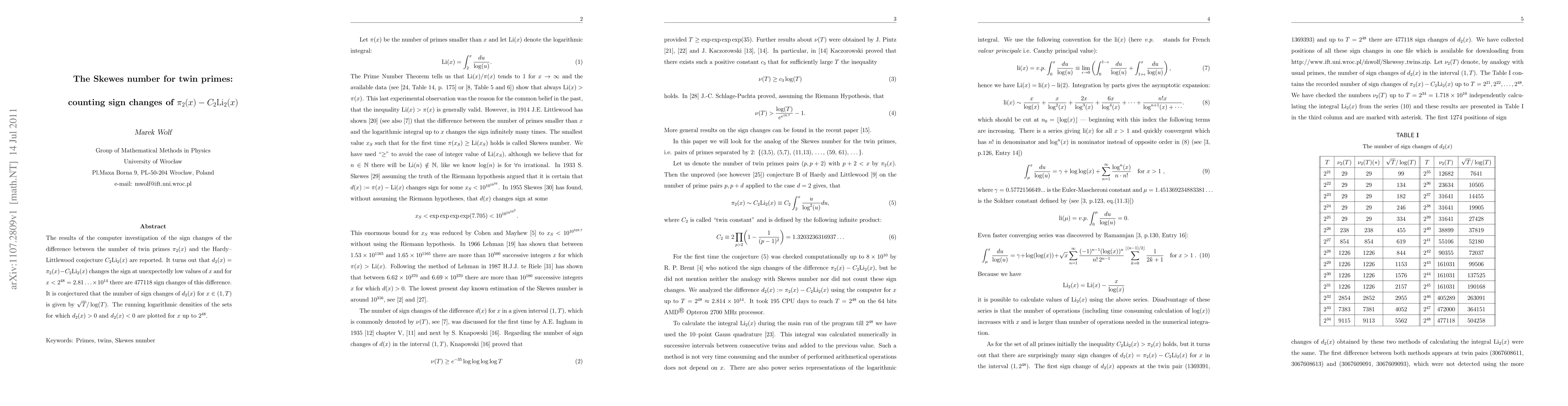 Researchers investigated sign changes in the difference between twin primes and a conjectured formula for twin primes, finding that these sign changes occur at unexpectedly low values of x, with 477118 changes observed up to x=2^48.