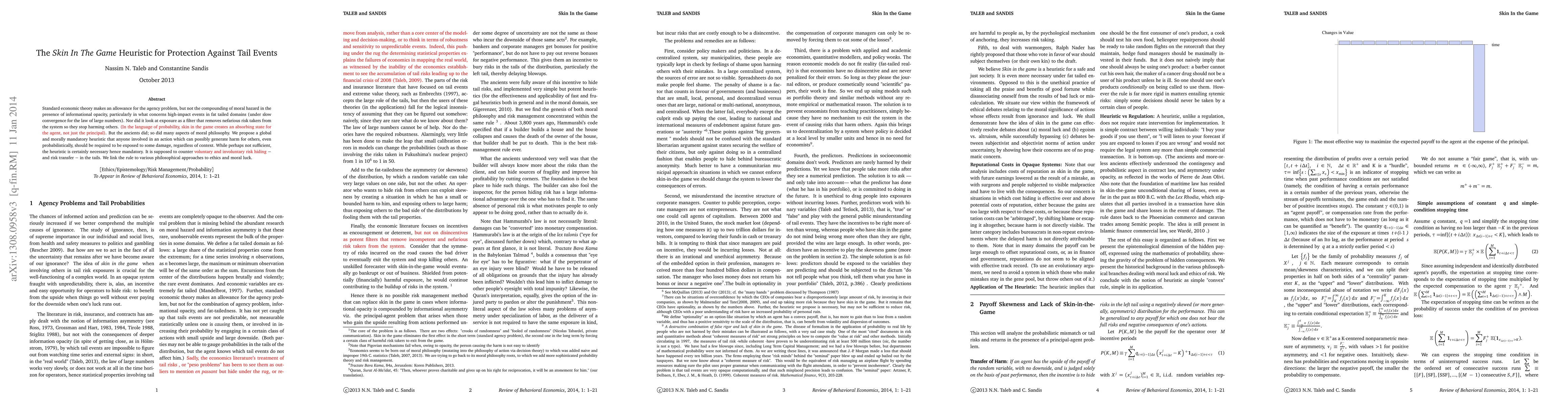Standard economic theory makes an allowance for the agency problem, but not the compounding of moral hazard in the presence of informational opacity, particularly in what concerns high-impact events in fat tailed domains (under slow convergence for the law of large numbers). Nor did it look at exposure as a filter that removes nefarious risk takers from the system so they stop harming others. \textcolor{red}{ (In the language of probability, skin in the game creates an absorbing state for the agent, not just the principal)}. But the ancients did; so did many aspects of moral philosophy. We propose a global and morally mandatory heuristic that anyone involved in an action which can possibly generate harm for others, even probabilistically, should be required to be exposed to some damage, regardless of context. While perhaps not sufficient, the heuristic is certainly necessary hence mandatory. It is supposed to counter voluntary and involuntary risk hiding$-$ and risk transfer $-$ in the tails. We link the rule to various philosophical approaches to ethics and moral luck.