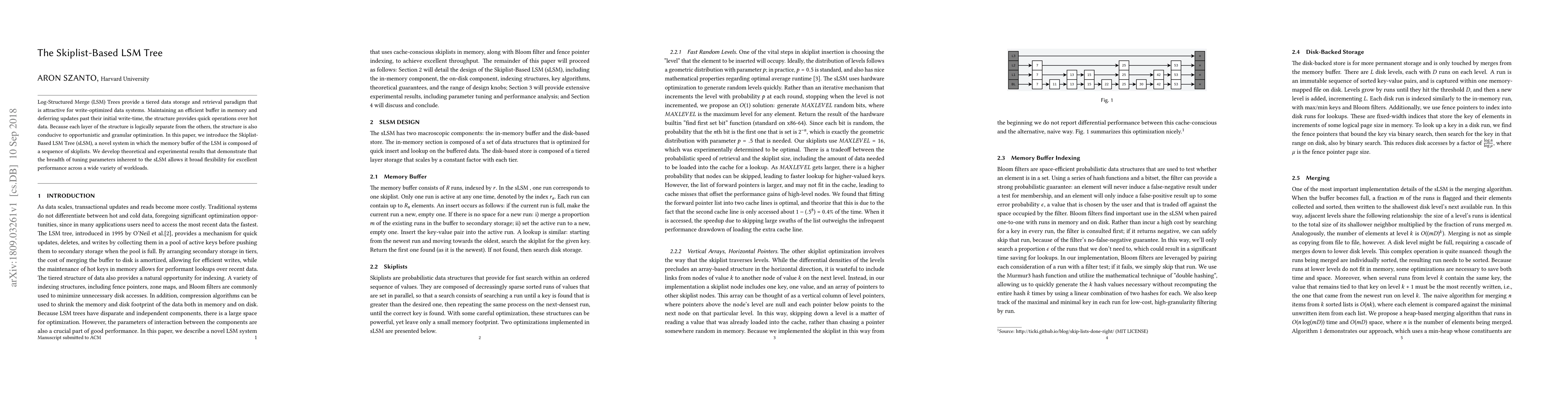 The paper introduces the Skiplist-Based LSM Tree (sLSM), a novel memory buffer system for LSM Trees using skiplists, offering broad flexibility and excellent performance across diverse workloads through its tunable parameters. Theoretical and experimental results validate its efficiency in write-optimized data systems.
