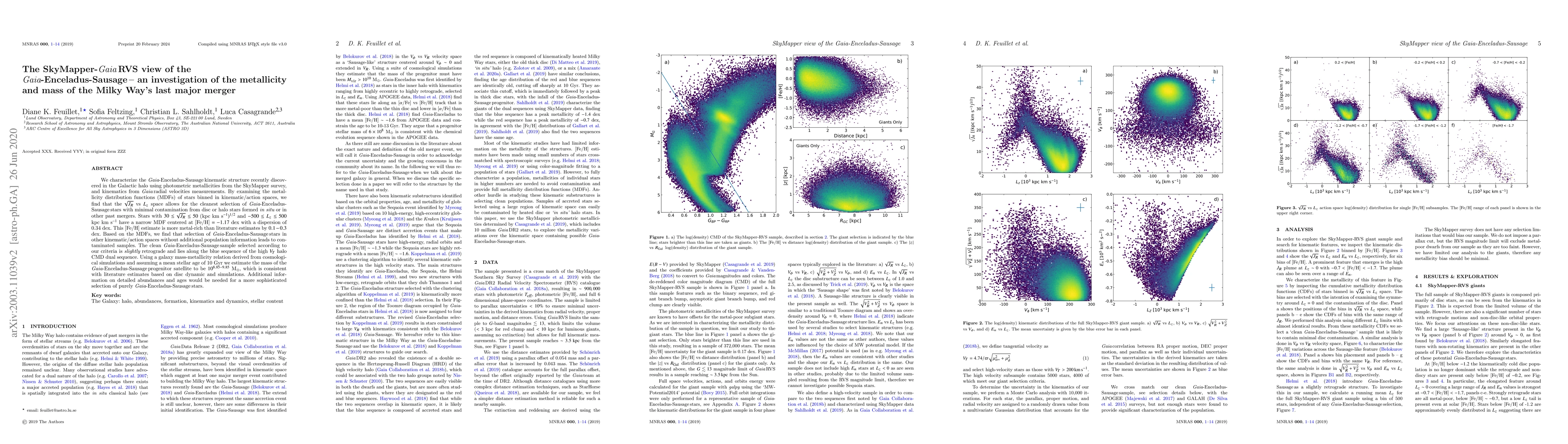 This paper investigates the Gaia-Enceladus-Sausage, a recently discovered structure in the Milky Way's halo, using SkyMapper metallicities and Gaia radial velocities. It finds a metal-rich MDF centered at [Fe/H] = -1.17 dex, suggesting a more metal-rich progenitor satellite with a mass of $10^{8.85-9.85}$ M$_{\odot}$, consistent with previous estimates.
