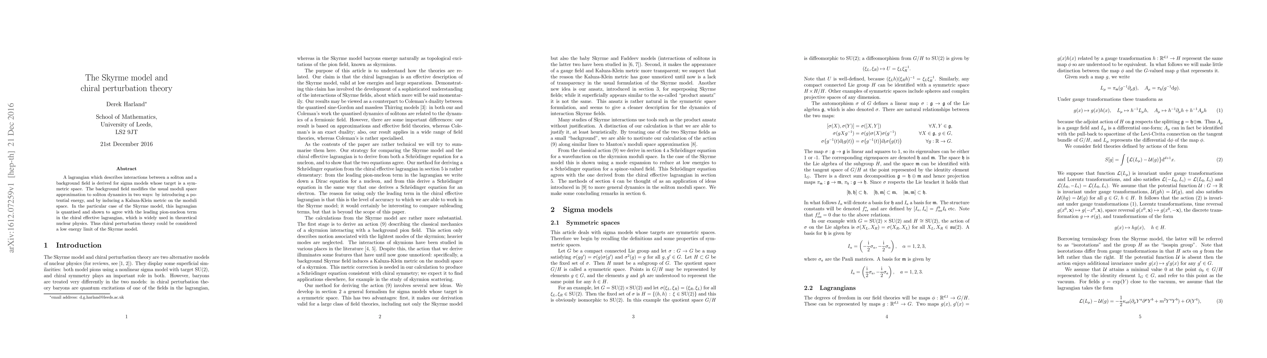 A lagrangian which describes interactions between a soliton and a background field is derived for sigma models whose target is a symmetric space. The background field modifies the usual moduli space approximation to soliton dynamics in two ways: by introducing a potential energy, and by inducing a Kaluza-Klein metric on the moduli space. In the particular case of the Skyrme model, this lagrangian is quantised and shown to agree with the leading pion-nucleon term in the chiral effective lagrangian, which is widely used in theoretical nuclear physics. Thus chiral perturbation theory could be considered a low energy limit of the Skyrme model.