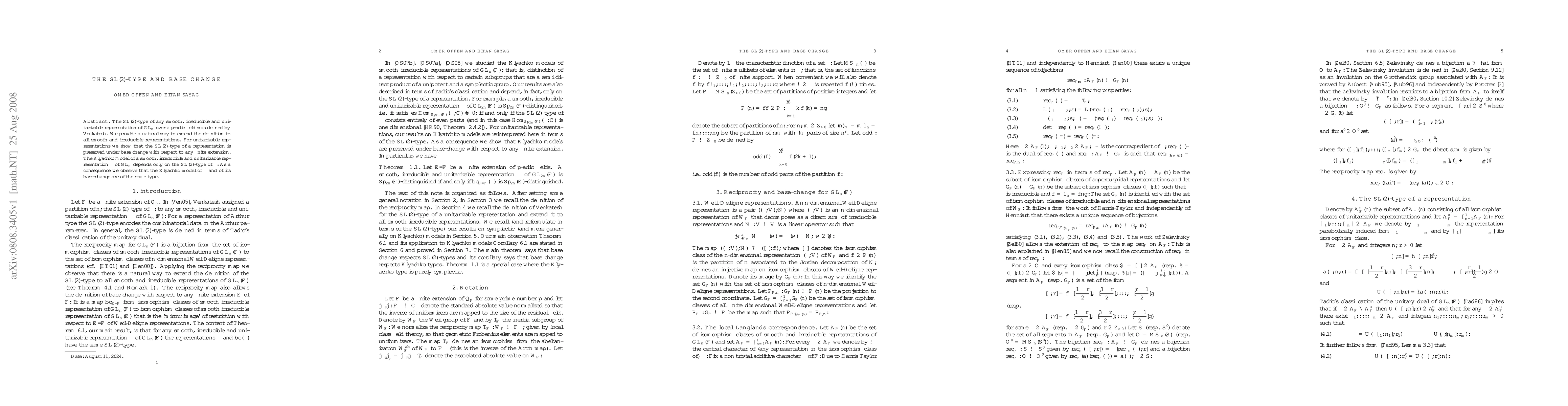 This paper extends the definition of SL(2)-type for all smooth, irreducible representations of GL(n) over p-adic fields, initially defined by Venkatesh. It demonstrates that for unitarizable representations, the SL(2)-type remains invariant under base change, regardless of the extension.