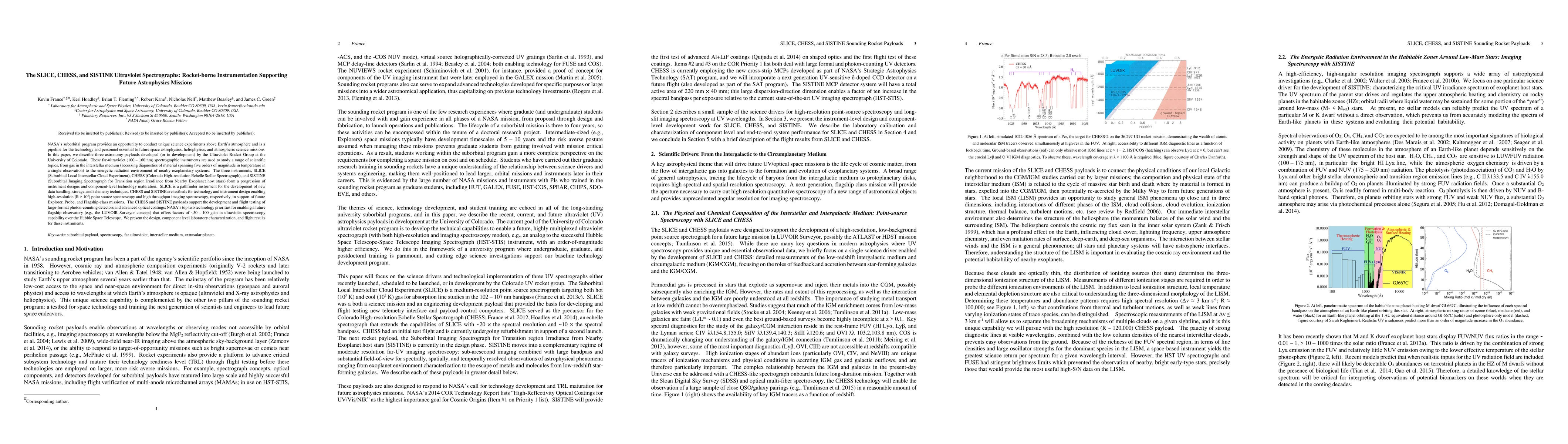 This paper details three far-ultraviolet spectrographs (SLICE, CHESS, and SISTINE) developed by the University of Colorado for NASA's suborbital rocket program, aimed at advancing astrophysics and technology for future space missions. These instruments support high-resolution spectroscopy and imaging, crucial for studying interstellar gas and exoplanetary environments.