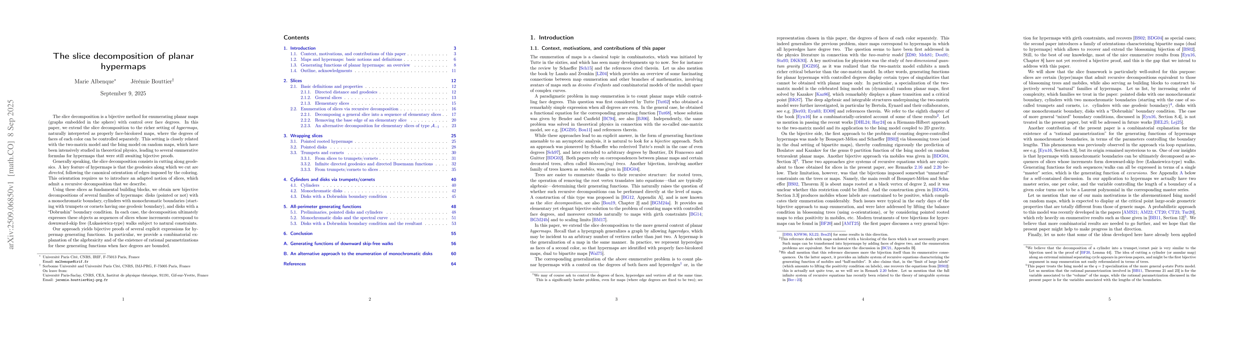 The slice decomposition is a bijective method for enumerating planar maps (graphs embedded in the sphere) with control over face degrees. In this paper, we extend the slice decomposition to the richer setting of hypermaps, naturally interpreted as properly face-bicolored maps, where the degrees of faces of each color can be controlled separately. This setting is closely related with the two-matrix model and the Ising model on random maps, which have been intensively studied in theoretical physics, leading to several enumerative formulas for hypermaps that were still awaiting bijective proofs. Generally speaking, the slice decomposition consists in cutting along geodesics. A key feature of hypermaps is that the geodesics along which we cut are directed, following the canonical orientation of edges imposed by the coloring. This orientation requires us to introduce an adapted notion of slices, which admit a recursive decomposition that we describe. Using these slices as fundamental building blocks, we obtain new bijective decompositions of several families of hypermaps: disks (pointed or not) with a monochromatic boundary, cylinders with monochromatic boundaries (starting with trumpets or cornets having one geodesic boundary), and disks with a "Dobrushin" boundary condition. In each case, the decomposition ultimately expresses these objects as sequences of slices whose increments correspond to downward-skip free (Lukasiewicz-type) walks subject to natural constraints. Our approach yields bijective proofs of several explicit expressions for hypermap generating functions. In particular, we provide a combinatorial explanation of the algebraicity and of the existence of rational parametrizations for these generating functions when face degrees are bounded.