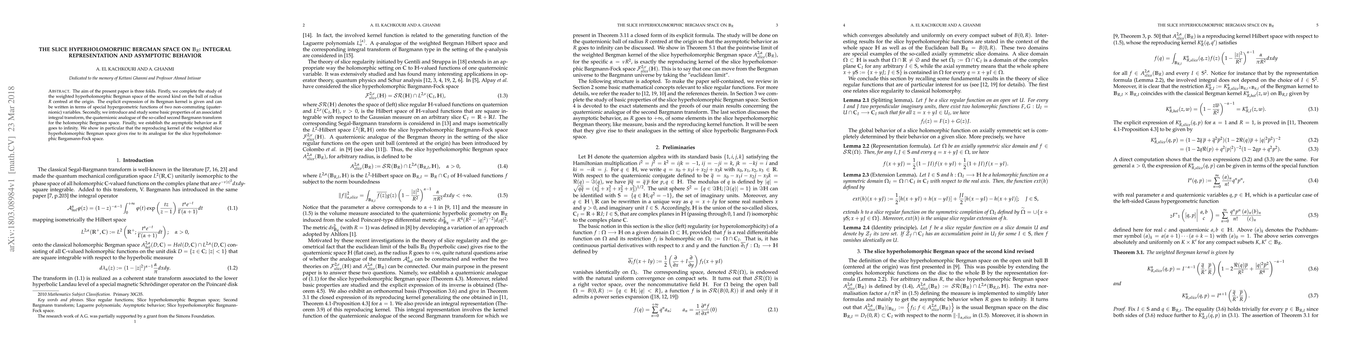 The paper studies the slice hyperholomorphic Bergman space on $\mathbb{B}_R$ by providing an integral representation and analyzing its asymptotic behavior as $R$ approaches infinity. It introduces a quaternionic analogue of the second Bargmann transform and establishes properties of this transform.