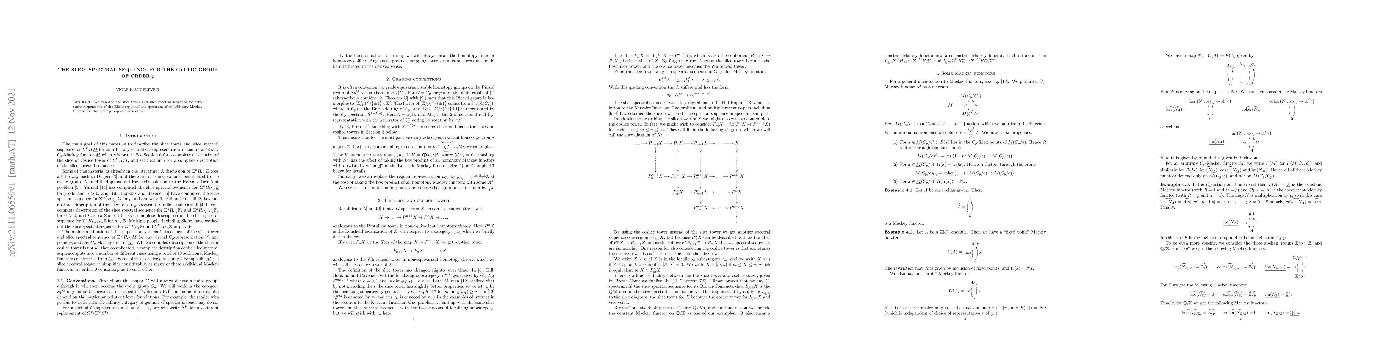 The paper develops the slice spectral sequence for cyclic groups of prime order, focusing on suspensions of the Eilenberg-MacLane spectrum related to Mackey functors. This provides a detailed framework for understanding homological algebraic structures in these contexts.