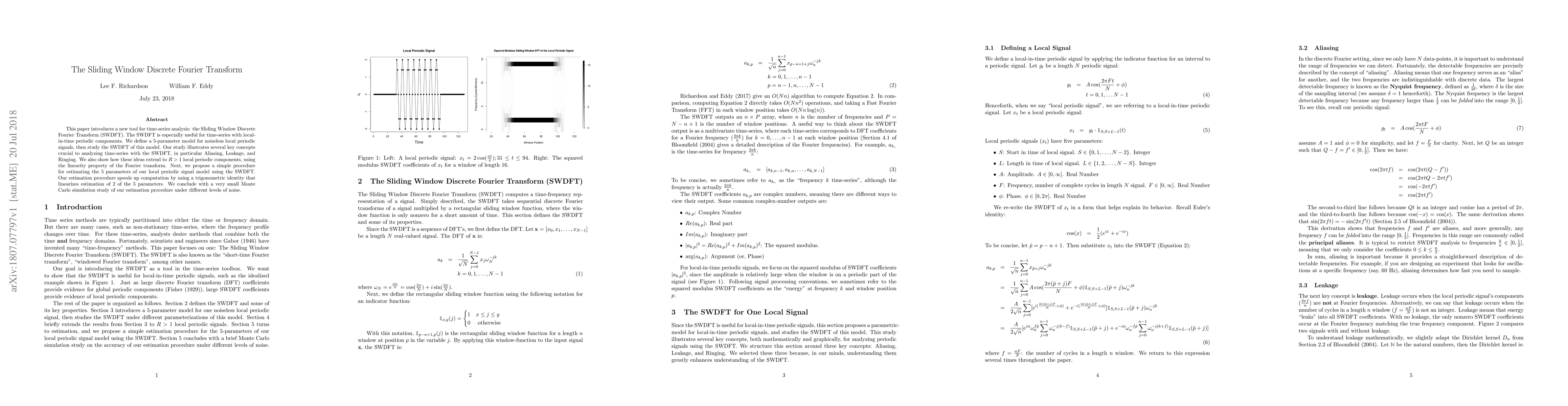 This paper introduces the Sliding Window Discrete Fourier Transform (SWDFT) for time-series analysis, focusing on local-in-time periodic components. It proposes a method for estimating the parameters of local periodic signals and evaluates the procedure using a Monte Carlo simulation.