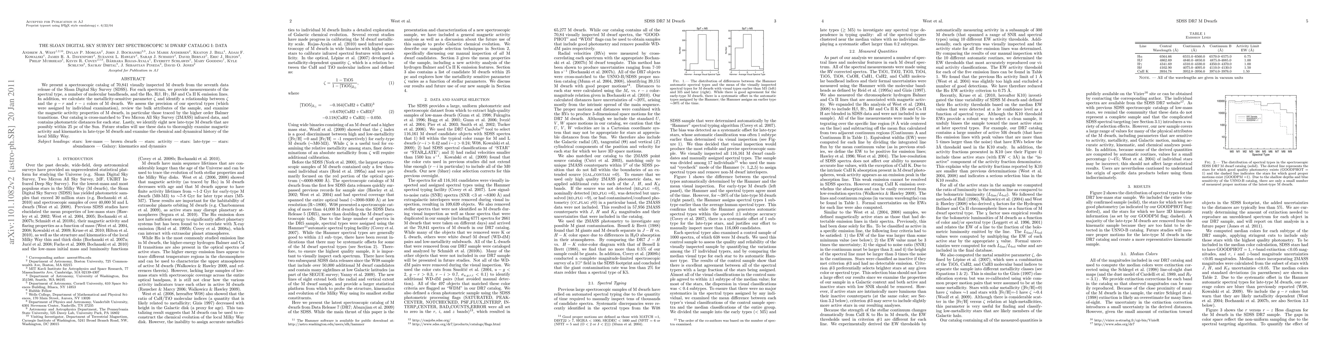 The Sloan Digital Sky Survey Data Release 7 presents a spectroscopic catalog of 70,841 M dwarfs, detailing spectral types, molecular bandheads, and emission lines, and identifying new nearby M dwarfs. The catalog also correlates metallicity with color indices and assesses magnetic activity properties.