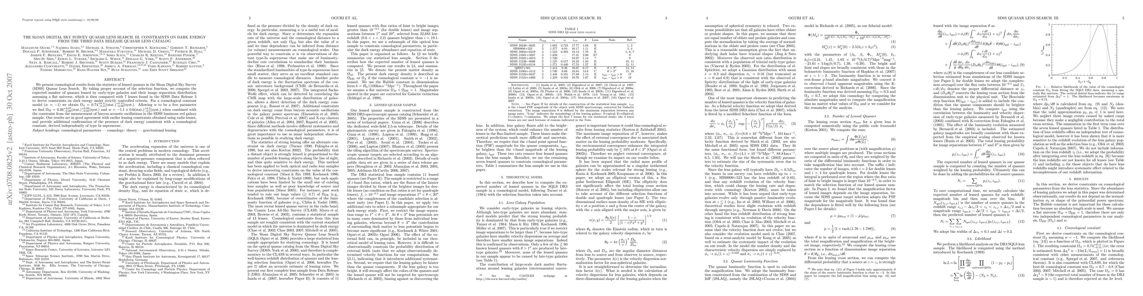 This paper uses lensed quasars from the Sloan Digital Sky Survey to derive constraints on dark energy, finding Ω_Λ=0.74±0.11 for a cosmological constant model. It also allows for a variable dark energy equation of state, yielding w=-1.1±0.6, consistent with dark energy behavior.