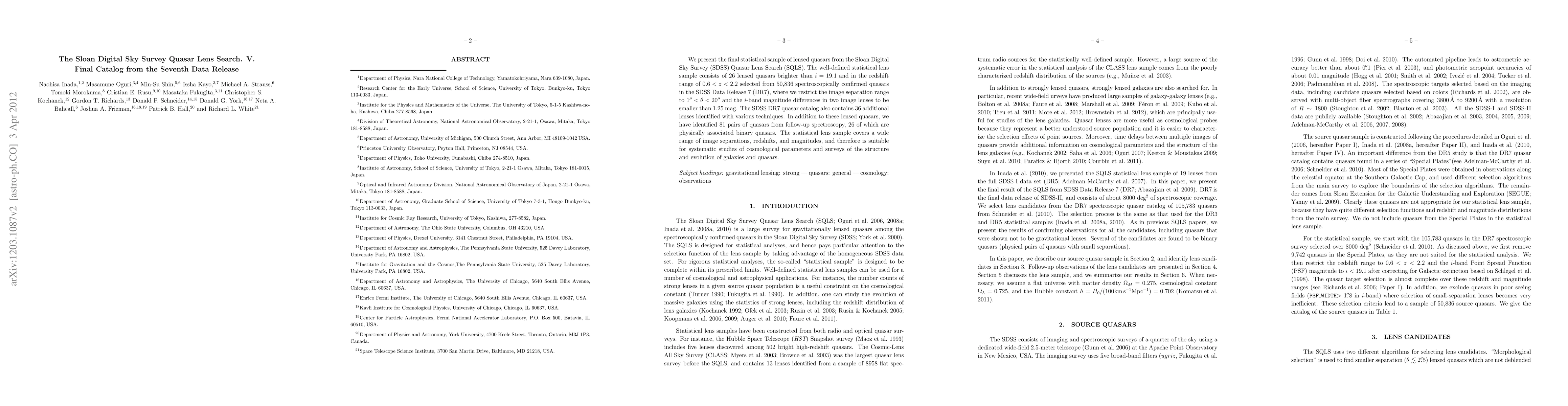 The Sloan Digital Sky Survey Quasar Lens Search (SQLS) presents a final catalog of 26 lensed quasars from SDSS Data Release 7, selected based on brightness, redshift, and image separation criteria. This sample, along with additional identified lenses, provides valuable data for cosmological parameter studies and galaxy evolution surveys.