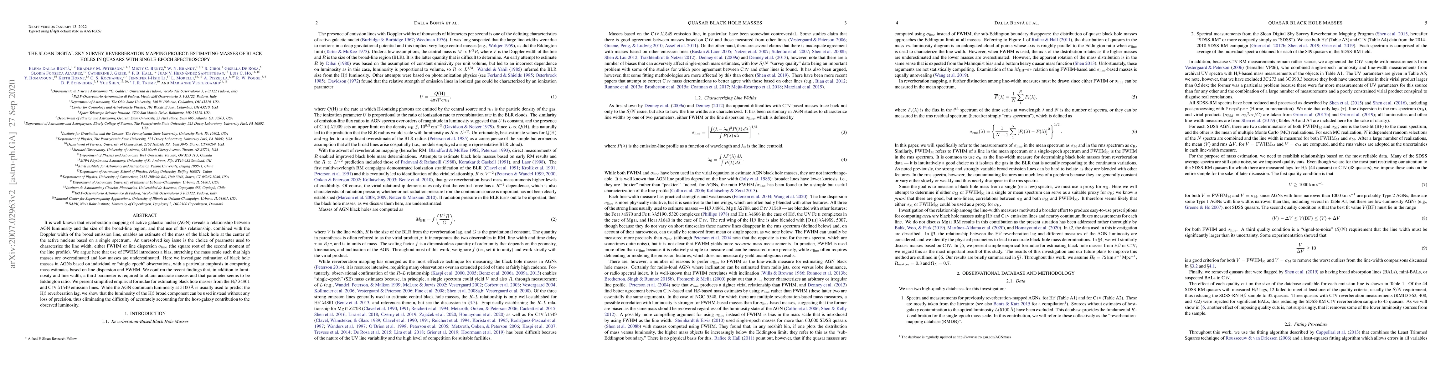 This paper investigates the estimation of black hole masses in quasars using single-epoch spectroscopy, arguing that FWHM introduces bias in mass estimates. It proposes line dispersion as a better parameter and confirms the necessity of the Eddington ratio for accurate mass estimation, presenting simplified empirical formulae for Hbeta and C IV lines.