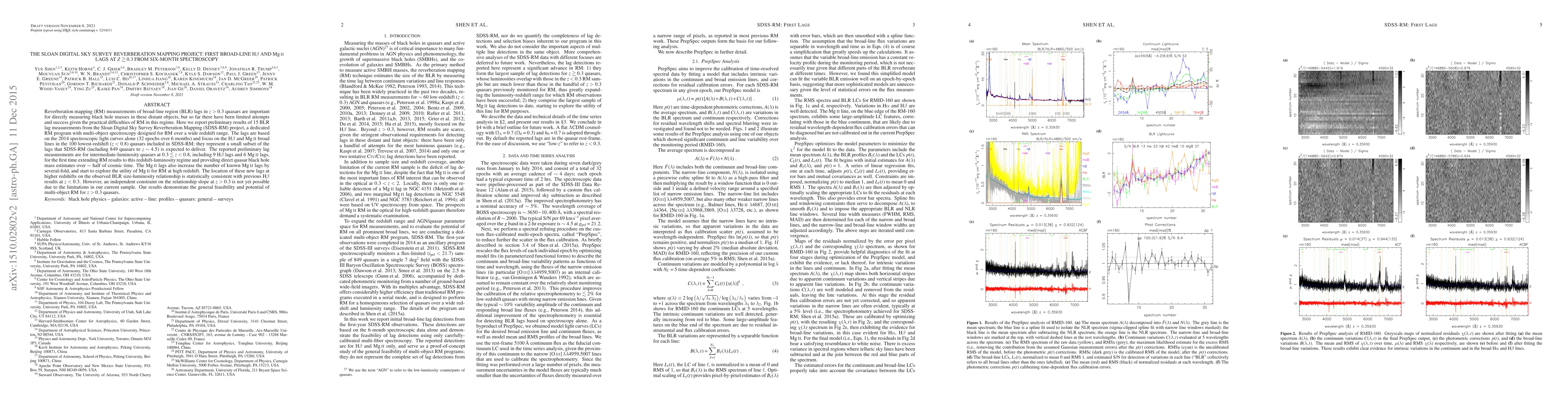 The Sloan Digital Sky Survey Reverberation Mapping Project reports preliminary lag measurements of 15 broad-line regions in quasars at redshifts 0.3<~z<0.8, extending reverberation mapping results to higher redshifts. This study provides direct black hole mass estimates and increases the number of known MgII lags, demonstrating the potential of multi-object spectroscopy for high-redshift quasars.