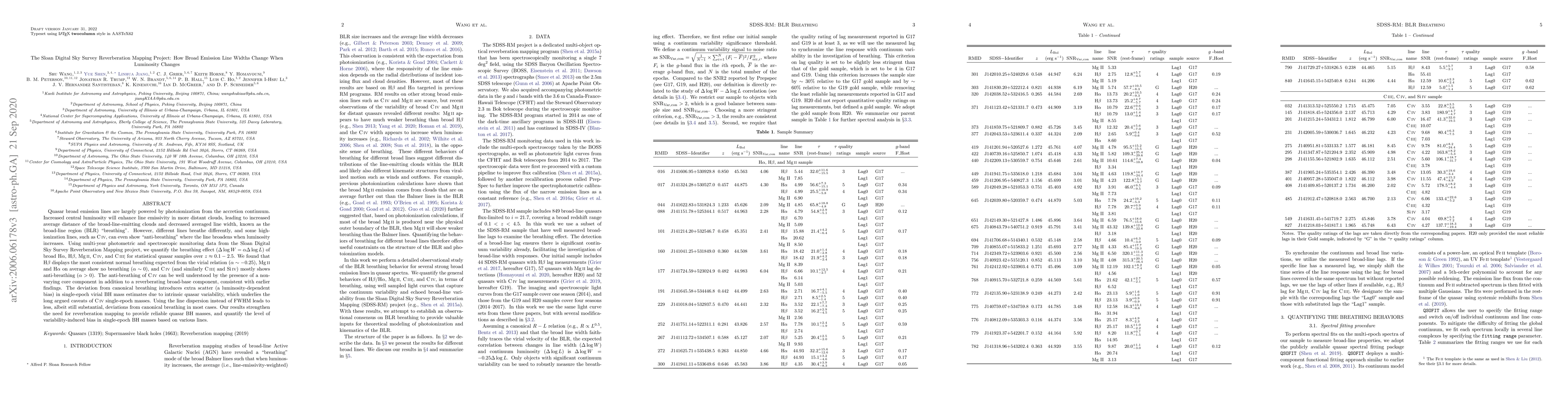 This paper investigates how the widths of broad emission lines in quasars change with luminosity using data from the Sloan Digital Sky Survey Reverberation Mapping Project. It finds that while Hβ follows expected "breathing" behavior, Mg II and Hα show no significant change, and C IV exhibits "anti-breathing," broadening with increased luminosity, due to a non-varying core component. This variability affects the accuracy of single-epoch black hole mass estimates.