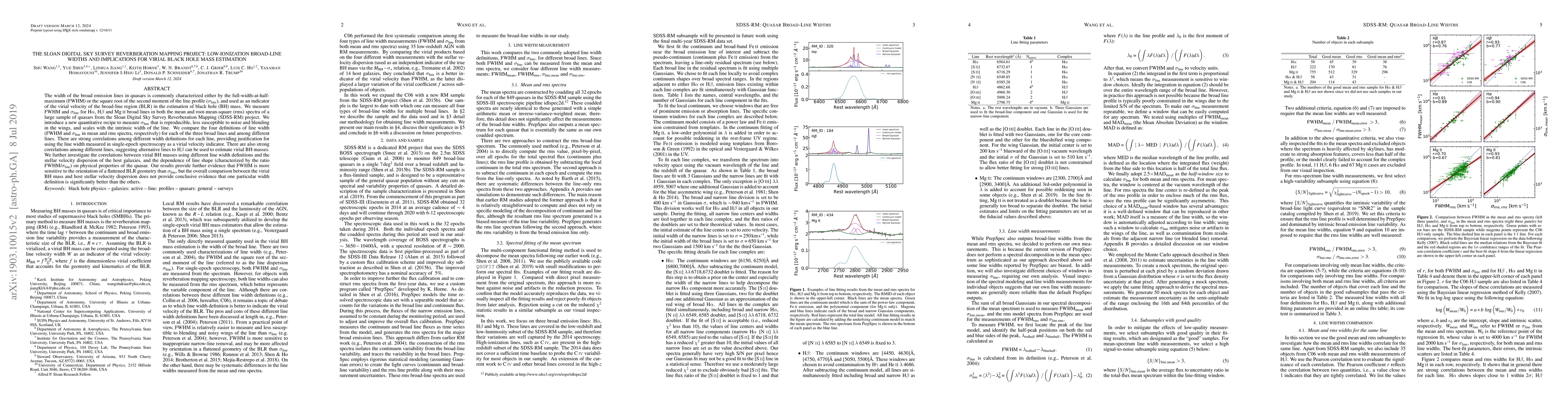 The Sloan Digital Sky Survey Reverberation Mapping Project measures the widths of broad emission lines in quasars to estimate black hole masses, finding strong correlations among different line width definitions and suggesting alternative lines to Hβ. The study does not conclusively determine which width definition is superior for mass estimation.