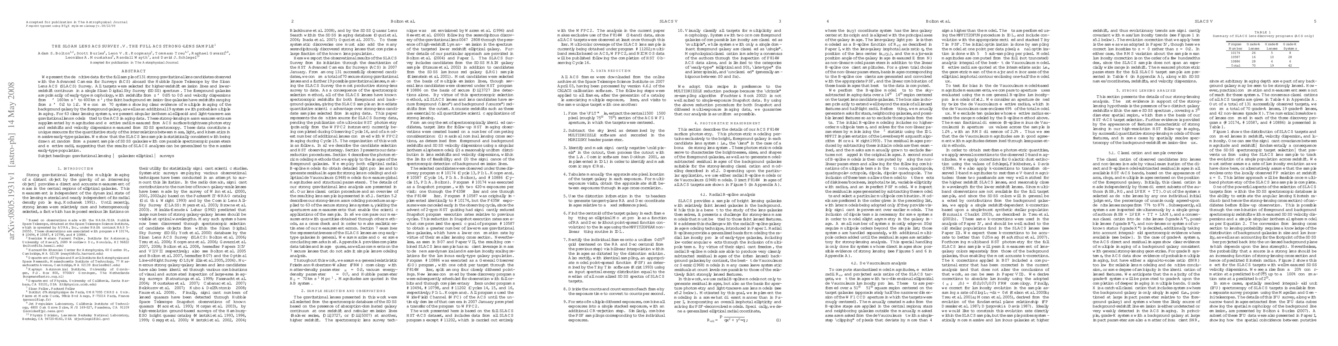 The SLACS Survey presents a comprehensive dataset of 131 strong gravitational lens candidates observed with the Hubble Space Telescope's ACS, confirming 70 clear lensing systems and providing detailed mass and light models for 63. This dataset serves as a valuable resource for studying the relationships between mass, light, and kinematics in massive early-type galaxies.
