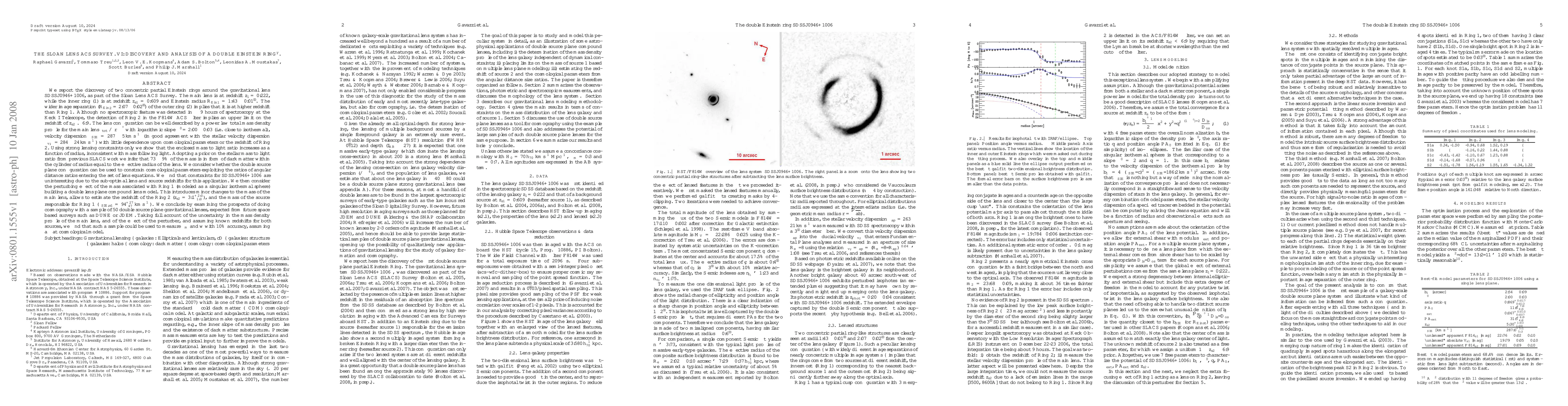 We report the discovery of two concentric Einstein rings around the gravitational lens SDSSJ0946+1006, as part of the Sloan Lens ACS Survey. The main lens is at redshift zl=0.222, while the inner ring (1) is at zs1=0.609 and Einstein radius $Re_1=1.43\pm0.01"$. The wider image separation ($Re_2=2.07\pm 0.02"$) of the outer ring (2) implies that it is at higher redshift. Its detection in the F814W filter implies zs2<6.9. The configuration can be well described by a total density profile $\rho_{tot} ~ r^-g'$ with $g'=2.00\pm0.03$ and velocity dispersion $\sigma_{SIE}=287\pm5\kms$. [...] We consider whether this configuration can be used to constrain cosmological parameters exploiting angular distance ratios entering the lens equations. Constraints for SDSSJ0946+1006, are uninteresting due to the sub-optimal lens and source redshifts. We then consider the perturbing effect of the mass associated with Ring 1 building a double lens plane compound lens model. This introduces minor changes to the mass of the main lens and allows to estimate the mass of Ring 1 $(\sigma_{SIE,s1}=94\pm30\kms)$. We examine the prospects of doing cosmography with a sample of 50 double lenses, expected from future space based surveys such as DUNE or JDEM. Taking full account of the model uncertainties, such a sample could be used to measure $\Omega_m$ and $w$ with 10% accuracy, for a flat cosmology.
