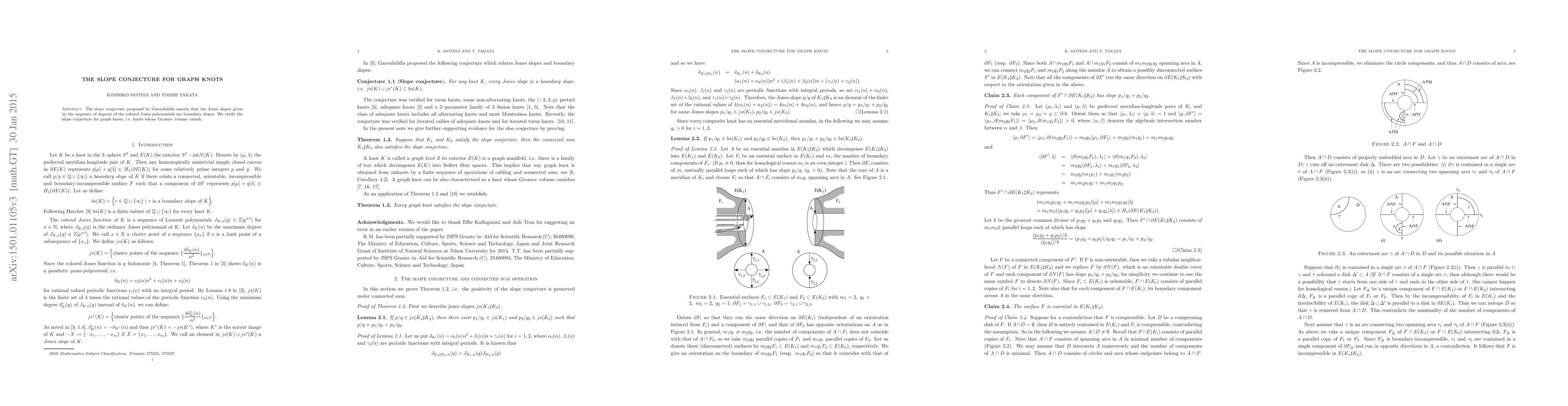Summary: This paper verifies the slope conjecture for graph knots, demonstrating that the Jones slopes derived from the colored Jones polynomials match the boundary slopes, supporting Garoufalidis' hypothesis. This finding applies specifically to knots where the Gromov volume is zero.