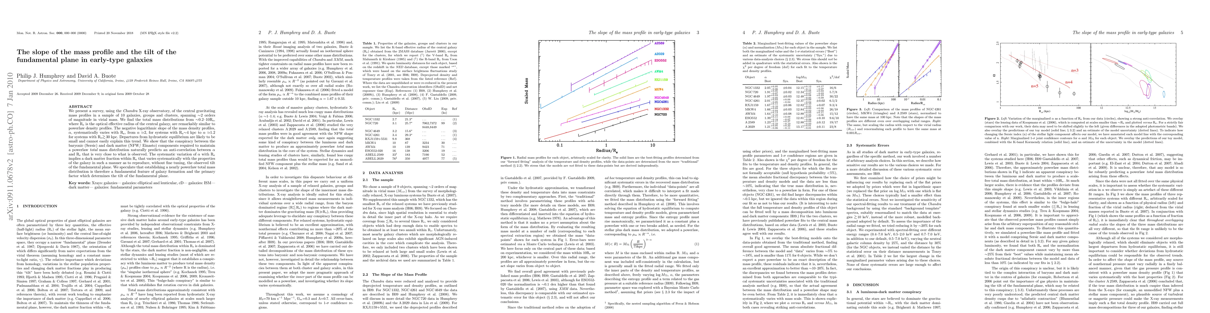 The study found that early-type galaxies have similar total mass distributions that follow a powerlaw density profile, which is linked to the tilt of their fundamental plane.