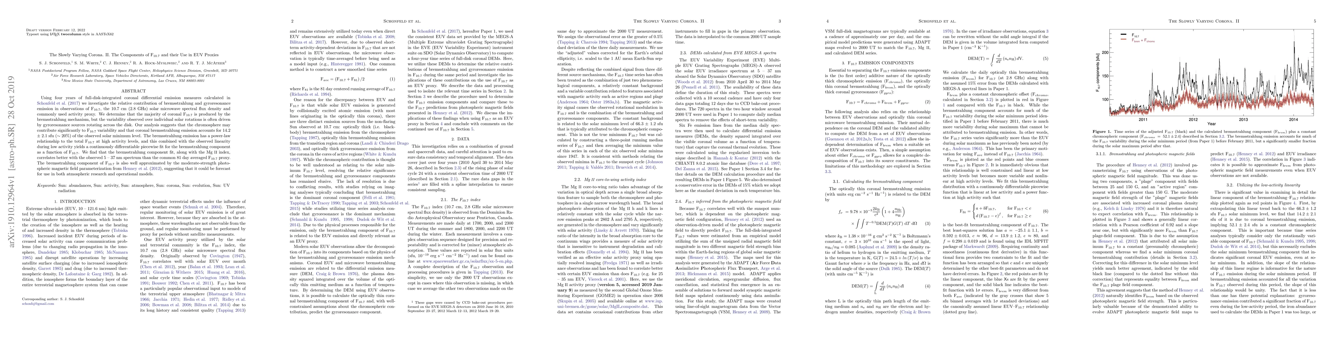 Using four years of full-disk-integrated coronal differential emission measures calculated in Schonfeld et al. (2017), we investigate the relative contribution of bremsstrahlung and gyroresonance emission in observations of F$_{10.7}$, the 10.7 cm (2.8 GHz) solar microwave spectral flux density and commonly used activity proxy. We determine that the majority of coronal F$_{10.7}$ is produced by the bremsstrahlung mechanism, but the variability observed over individual solar rotations is often driven by gyroresonance sources rotating across the disk. Our analysis suggests that the chromosphere may contribute significantly to F$_{10.7}$ variability and that coronal bremsstrahlung emission accounts for 14.2 $\pm$ 2.1 sfu ($\sim20\%$) of the observed solar minimum level. The bremsstrahlung emission has a power-law relationship to the total F$_{10.7}$ at high activity levels, and this combined with the observed linearity during low activity yields a continuously differentiable piecewise fit for the bremsstrahlung component as a function of F$_{10.7}$. We find that the bremsstrahlung component fit, along with the Mg II index, correlates better with the observed 5-37 nm spectrum than the common 81 day averaged F$_{10.7}$ proxy. The bremsstrahlung component of F$_{10.7}$ is also well approximated by the moderate-strength photospheric magnetic field parameterization from Henney et al. (2012), suggesting that it could be forecast for use in both atmospheric research and operational models.