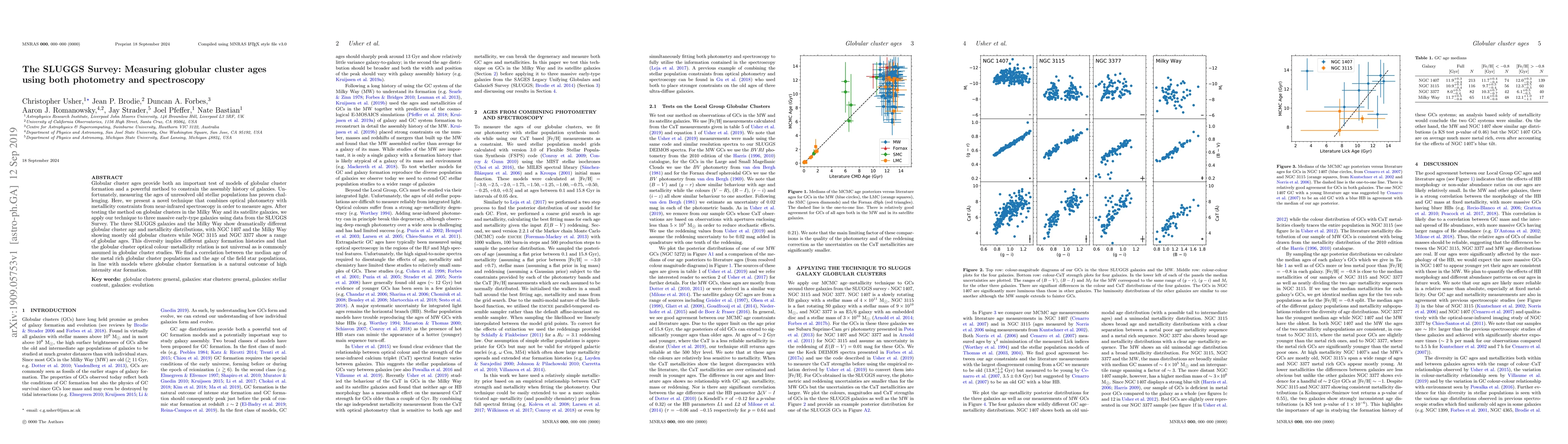 The SLUGGS Survey introduces a novel technique combining optical photometry and near-infrared spectroscopy to measure globular cluster ages, revealing diverse age and metallicity distributions among galaxies, challenging the assumption of a universal globular cluster optical colour-metallicity relation. The study shows a correlation between the median age of metal-rich globular clusters and the age of field stars, supporting models of globular cluster formation linked to high-intensity star formation.