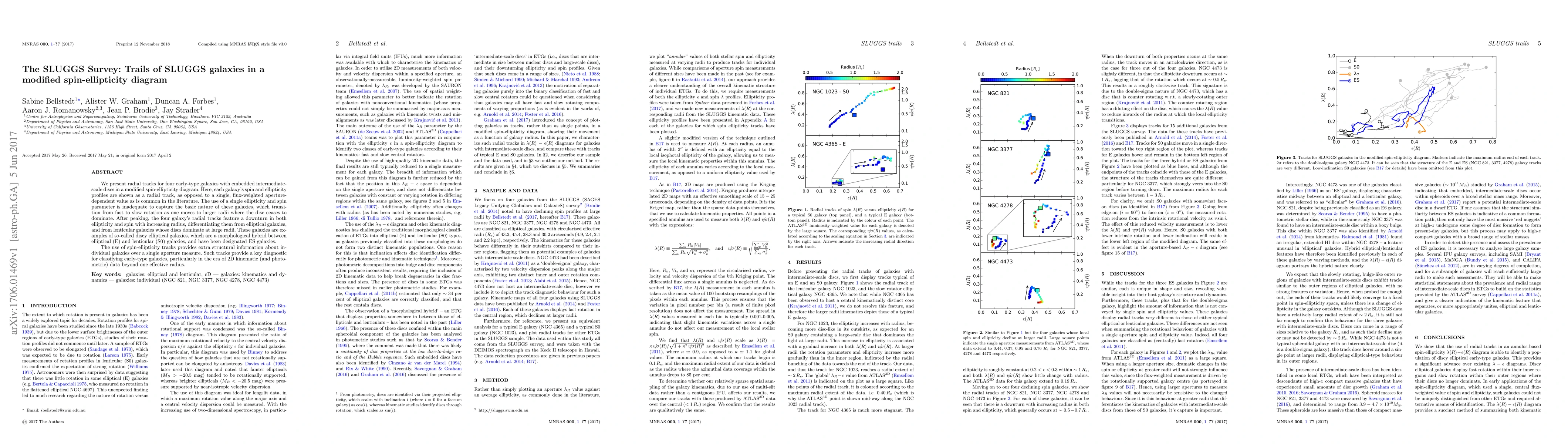 We present radial tracks for four early-type galaxies with embedded intermediate-scale discs in a modified spin-ellipticity diagram. Here, each galaxy's spin and ellipticity profiles are shown as a radial track, as opposed to a single, flux-weighted aperture-dependent value as is common in the literature. The use of a single ellipticity and spin parameter is inadequate to capture the basic nature of these galaxies, which transition from fast to slow rotation as one moves to larger radii where the disc ceases to dominate. After peaking, the four galaxy's radial tracks feature a downturn in both ellipticity and spin with increasing radius, differentiating them from elliptical galaxies, and from lenticular galaxies whose discs dominate at large radii. These galaxies are examples of so-called discy elliptical galaxies, which are a morphological hybrid between elliptical (E) and lenticular (S0) galaxies, and have been designated ES galaxies. The use of spin-ellipticity tracks provides extra structural information about individual galaxies over a single aperture measure. Such tracks provide a key diagnostic for classifying early-type galaxies, particularly in the era of 2D kinematic (and photometric) data beyond one effective radius.