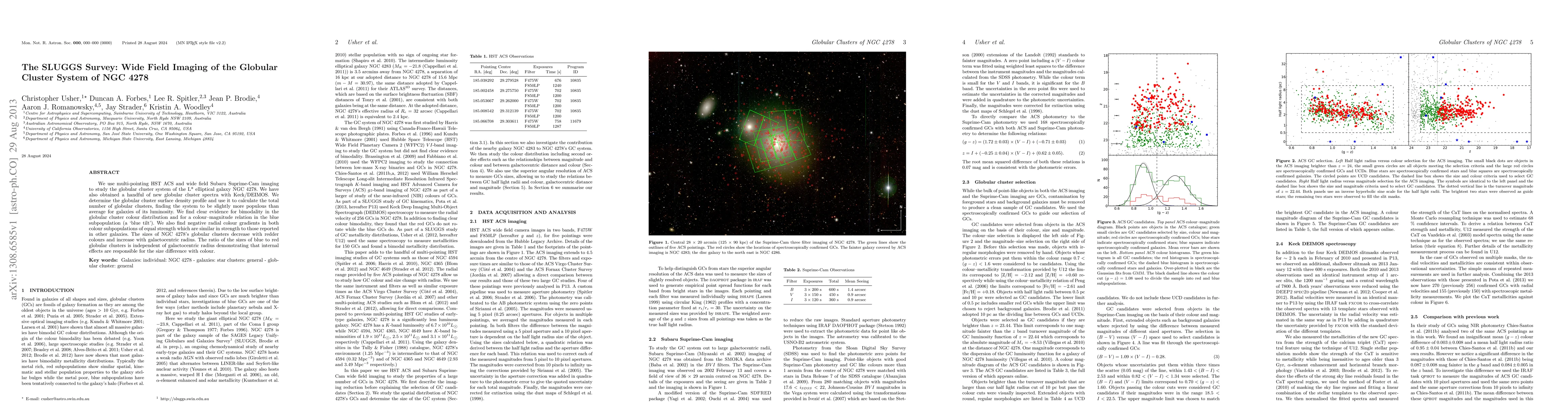 The SLUGGS Survey investigates the globular cluster system of NGC 4278 using HST and Subaru imaging, revealing a populous cluster system with bimodal colour distribution and a 'blue tilt'. The study finds negative radial colour gradients and size variations correlating with colour and galactocentric radius.