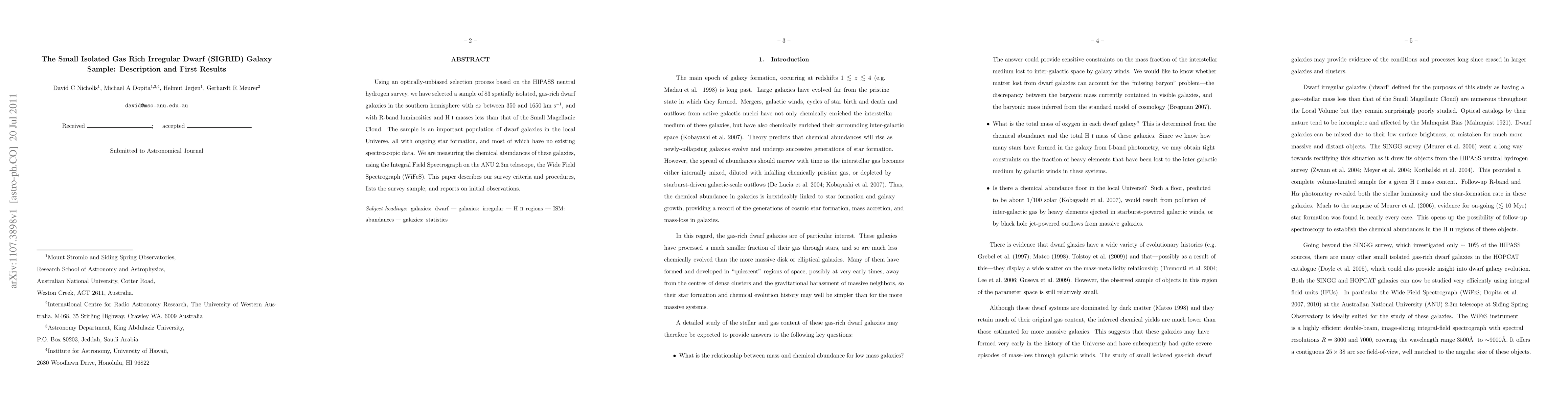 Using an optically-unbiased selection process based on the HIPASS neutral hydrogen survey, we have selected a sample of 83 spatially isolated, gas-rich dwarf galaxies in the southern hemisphere with cz between 350 and 1650 km s-1, and with R-band luminosities and HI masses less than that of the Small Magellanic Cloud. The sample is an important population of dwarf galaxies in the local Universe, all with ongoing star formation, and most of which have no existing spectroscopic data. We are measuring the chemical abundances of these galaxies, using the Integral Field Spectrograph on the ANU 2.3m telescope, the Wide Field Spectrograph (WiFeS). This paper describes our survey criteria and procedures, lists the survey sample, and reports on initial observations.